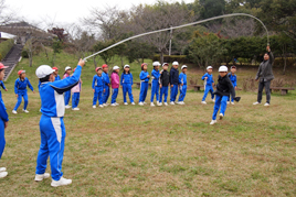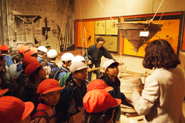 次に、児童広場でお弁当とおやつを食べました。大縄とびや鬼ごっこなどをして遊び、最後に民俗博物館で、昔の農林業や生活の道具を見学しました。学芸員さんの解説を聞き、内容を熱心に書き取る様子も見えました。