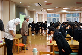 続いて、米作りを指導していただいた、ならグリーンファームの飯田喜代視さんから『新嘗祭』の説明と、「米作りの苦労を思い出して、食べ物やご両親に感謝する気持ちを忘れず、一粒一粒大切に味わってください」とお話がありました。