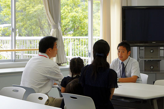 説明会終了後に行われた、個別相談会では、入学試験や入学後に関する内容などの質問に対応していました。参加された保護者から「独自の一貫教育システムがいいですね。そして異学年の交流が積極的に行われるのはとても魅力です」といった声を数多くいただきました。