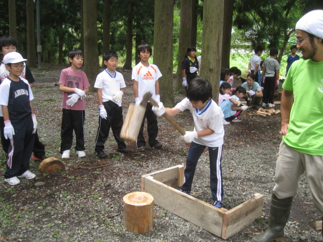 2日目は、「ラフティング」「飯盒炊飯」「薪割り体験」などを行いました。「ラフティング」では、途中で川に飛び込んだり流れたりして、子どもたちは非常に楽しく活動していました!「薪割り体験」では、斧の重さに最初驚いていた子どもたちも、慣れてくるとなかなか板についてきて、1人で大きな丸太を割る子も出てきました。