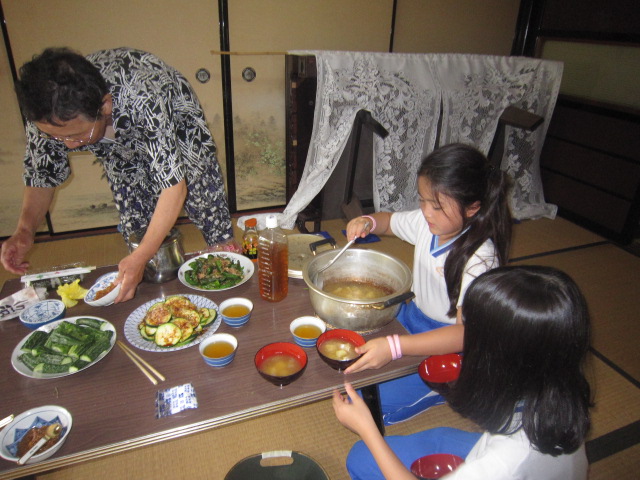 3日目は、地元の農家のお宅に分かれて「農業体験」を行いました。おじいさん、おばあさんと一緒に野菜を収穫し、その後みんなで調理をしました。採りたての野菜を使ったサラダや地元のお米を使ったおにぎりなど、とても美味しくいただきました。 非常に充実した3日間を過ごせました。