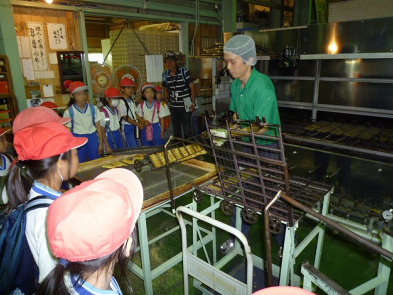 お天気に恵まれた5月20日(金)、P3学年は、社会科で学習する地域産業の学習を中心に、高山方面へ遠足に行きました。 最初に見学したのは、高山製菓株式会社です。餅米を蒸し、餅をつくところから見せていただくことができました。工場の方がていねいに説明してくださったおかげで、おいしいおかきを作るためには、長い時間がかかり、多くの工夫と苦労があることを学んだようです。 香ばしいおかきの香りですっかりおなかが減った子どもたちは、ほしだ園地に移動し、待ちに待ったお弁当をいただきました。その後、星のブランコ(つり橋)までハイキング。橋の上からの絶景に、思わず「ヤッホー」の声も。一方で、あまりの高さに少しこわくなってしまった子もいたようです。 最後は、高山竹林園での茶筅のお話とお抹茶体験です。500年以上の歴史を有する茶筅が、高山の地で受け継がれてきたことに、子どもたちも驚いたようです。お抹茶体験では、礼法で学んだことを生かしながら、午後の一服をおいしくいただくことができました。