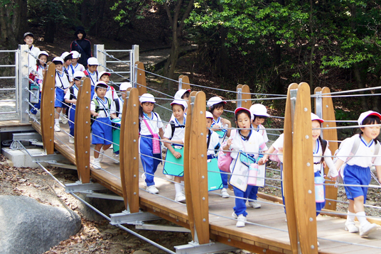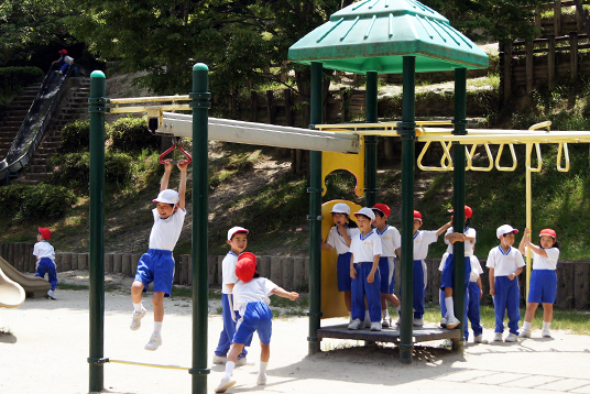 遊びの時間には、ルールを守って譲り合いながら、すべり台やアスレチック遊具で楽しく遊び、友達とも一段と仲良くなりました。