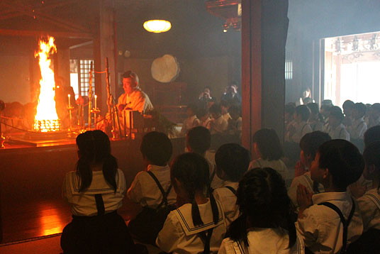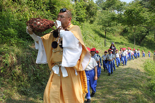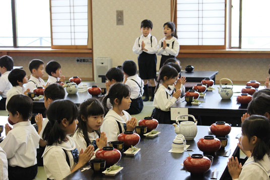 晴天に恵まれた5月19日と20日の両日、吉野山でP2(小学2年)宿泊学習を行いました。児童たちは笑顔でバスに乗り込み、一路、吉野の竹林院群芳園へ向かいました。開宿式を行った後、児童たちはきちんと正座をして、奈良県産の食材を生かしたちらし寿司と三輪そうめん、カスタードあんをくずもちでくるんだ笹巻カスタードをデザートに昼食をおいしくいただきました。 |