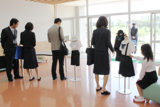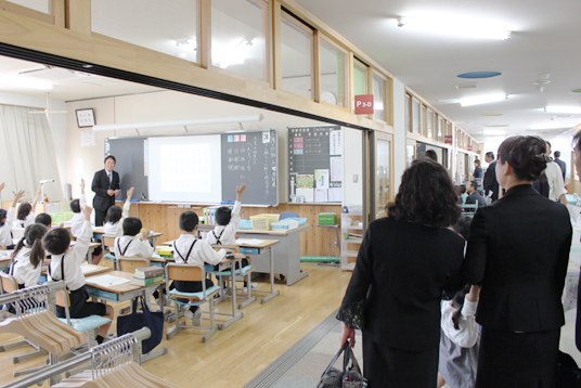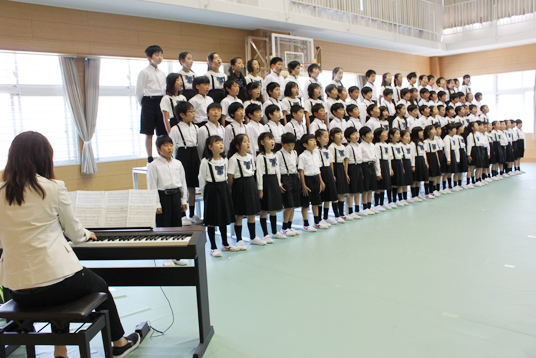 5月14日と18日、保護者の皆さまを対象に「平成23年度学校見学会・説明会」を開きました。開会に先立ち体育館で、P4(小学4年)生が歓迎の気持ちを込めて合唱を披露しました。大勢の保護者の皆さまの前で緊張しながらも「ぼくらの世界」を歌い、美しいハーモニーを奏でました。その後参加者は授業風景と子どもたちが学習に取り組む姿勢、開放的な教室やオープンスペースなどコミュニケーションを重視する本校の各施設の見学を行いました。 |