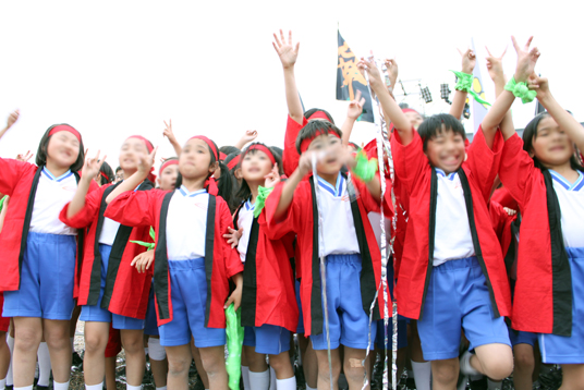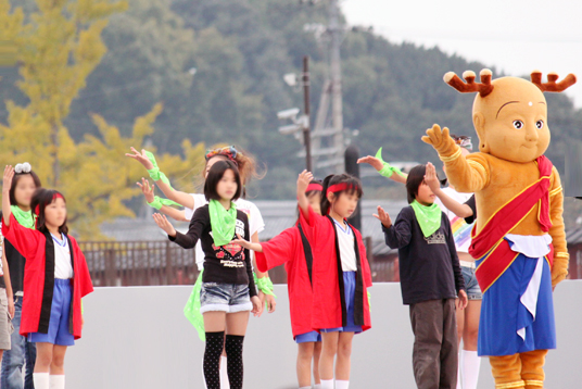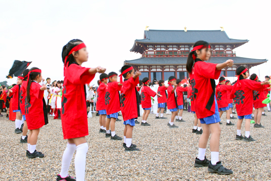 P3(小学3年)生が、平城遷都1300年祭”秋のフェア”が7日閉幕。主会場の平城宮跡会場ではフィナーレイベントが午後3時から、復元された第1次大極殿前の広場に設けられた特設ステージでスタート。 |