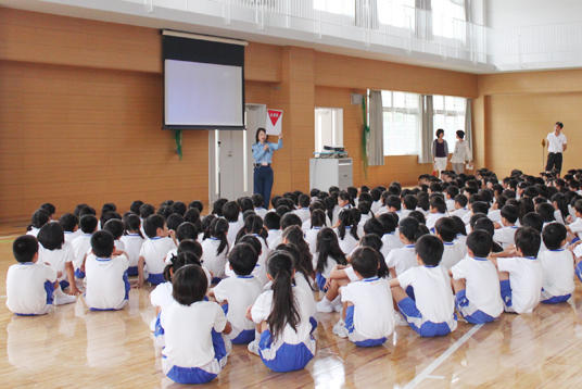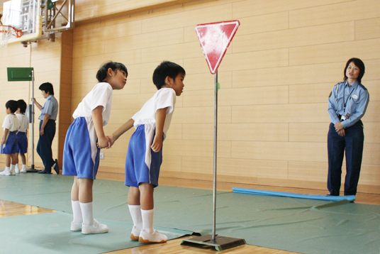 「小学1~3年生は子どもたちだけでの外出が増え、行動範囲が広がります。この安全教室で、意識を新たにすることで事故防止につながれば」と福森婦警さんからお話をうかがいました。子どもたちは、しっかりと交通安全の意識を高めました。