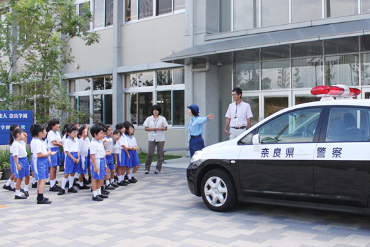 奈良西警察署と奈良市役所の方々をお招きし、小学1~3年生を対象に、交通安全教室を行いました。