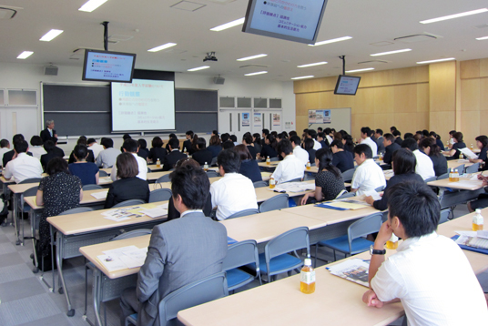 8月21日(土)本校C棟大講義室において、保護者対象入試説明会を行いました。 冒頭挨拶で西川彭理事長は「5つの教育理念と12年教育の必要性」について話されました。その後、福永吉延校長より、本校の教育目標についてお話があり、続いて藤原和幸副校長から本校の特色や教育内容、平成23年度の入試について詳細な説明を行いました。約200名の参加者はメモをとるなど熱心に聞き入っていました。 参加した保護者の方は、「子どもが12年間を過ごす環境として、施設、教員、理念に不安を感じなかった」、「幼稚園、小学校、中学校、高等学校が合同で行う行事や学習も多く、他校より充実した人間関係を形成できる環境だと思った」といった感想をいただくことが出来ました。