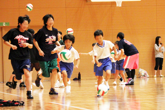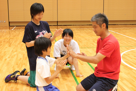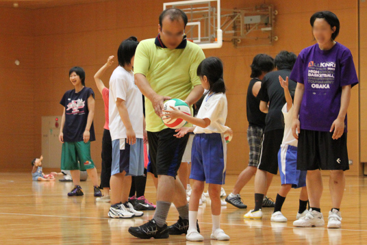 指導してくださるのは、この夏に全国大会3連覇を狙うバスケットボール部監督・永保司先生と幼児教育科1・2回生の部員のお姉さん。
