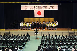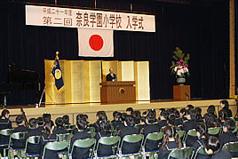 平成21年度入学式を挙行しました 2009.04.04(土) Post 奈良学園小学校の平成21年度入学式を挙行しました。計94名の新入生が第2期生として迎えられ、「どんなこともやり通す、お友達を大切にする、そんな奈良学園の小学生になってください」と校長先生より歓迎の言葉が贈られました。また、幼稚園から高校までの共通の校歌を荒井敦子さんに作詞作曲していただき、その校歌のお披露目もされました。荒井敦子さんがご指導なさっているまつぼっくり合唱団と本学園の幼稚園~中学校までの代表生徒が壇上に上がり、真新しい校歌が館内に響きました。 « 人形劇を鑑賞しました 中国西安市訪日教育旅行視察団が来校されました »