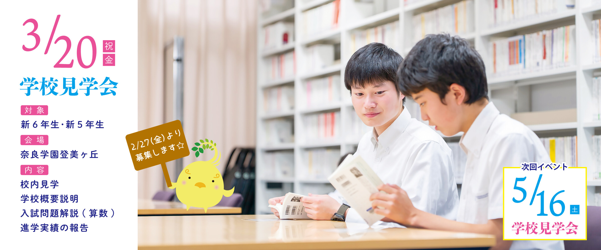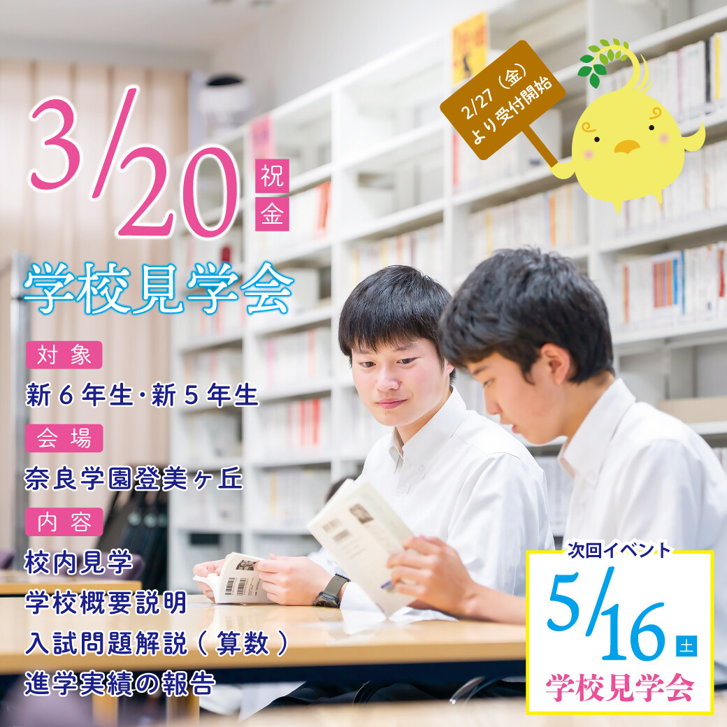 2026.02.20【2/27(金)申込受付】3/20(金・祝)学校見学会のご案内 2025.12.01【ココロコミュ】"チームなとみん"が紹介 ナラトミ生お気に入りの キャンパス"推し"スポット! 2025.11.28オンライン個別相談・個別学校見学を募集中です(月末更新予定 ) 2025.11.19【PDF】学校感染症による出席停止について 2025.10.06【読売オンライン】新設の「シンガポール研修」で世界人材へさらに一歩 2025.09.24【youtube】学校紹介 2025