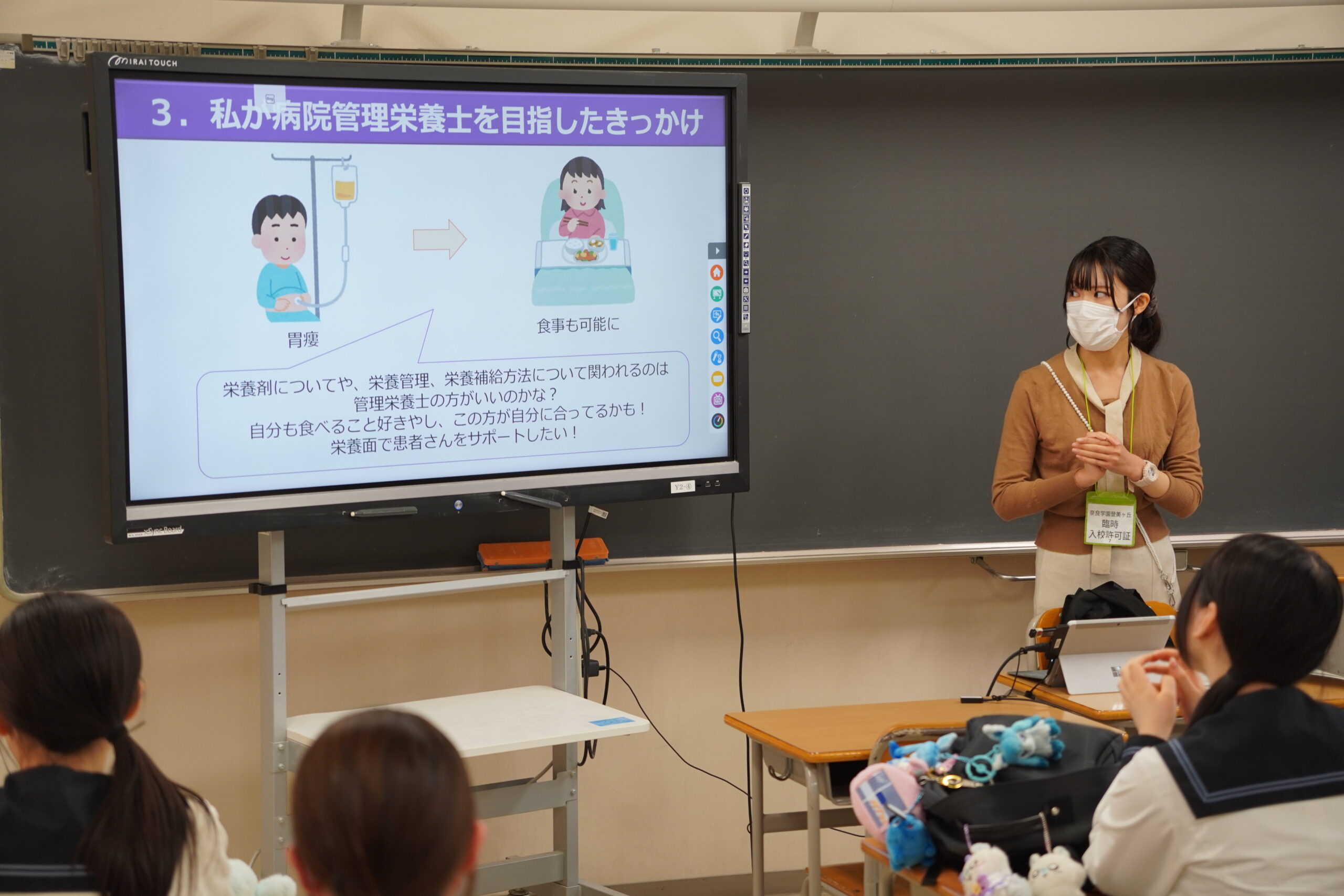 「(医師からは)大学はゴールではない。膨大なテストの数と果てしない暗記量に圧倒され、泣きながら勉強した」「周りをよく見て、常に自分をアップデートすること。謙虚に学び続けることが大事」「皆さんは何にだってなれるし、何になってもいい。今はそのための土台をしっかり作る時期です」と温かいアドバイスや激励があり、生徒たちも真剣に受け止めてくれたと思います。