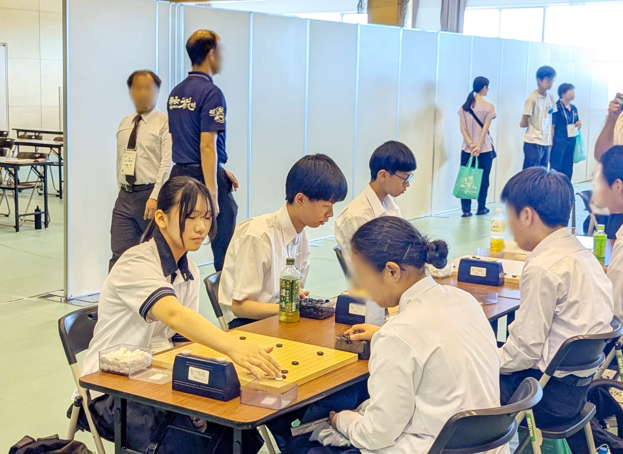 囲碁部門では、Y3(高2)女子生徒が他校男子生徒2人と組んで、奈良県男女混合団体戦に出場しました。全6対局をスイス方式(チームの勝ち数、対戦相手の勝ち数、相手の相手の勝ち数)で戦い、順位が決まります。出場生徒は、静まりかえった会場の中、全集中力を発揮して頑張り抜き、奈良県チームとしては3勝3敗で、全48チーム中19位と健闘しました。