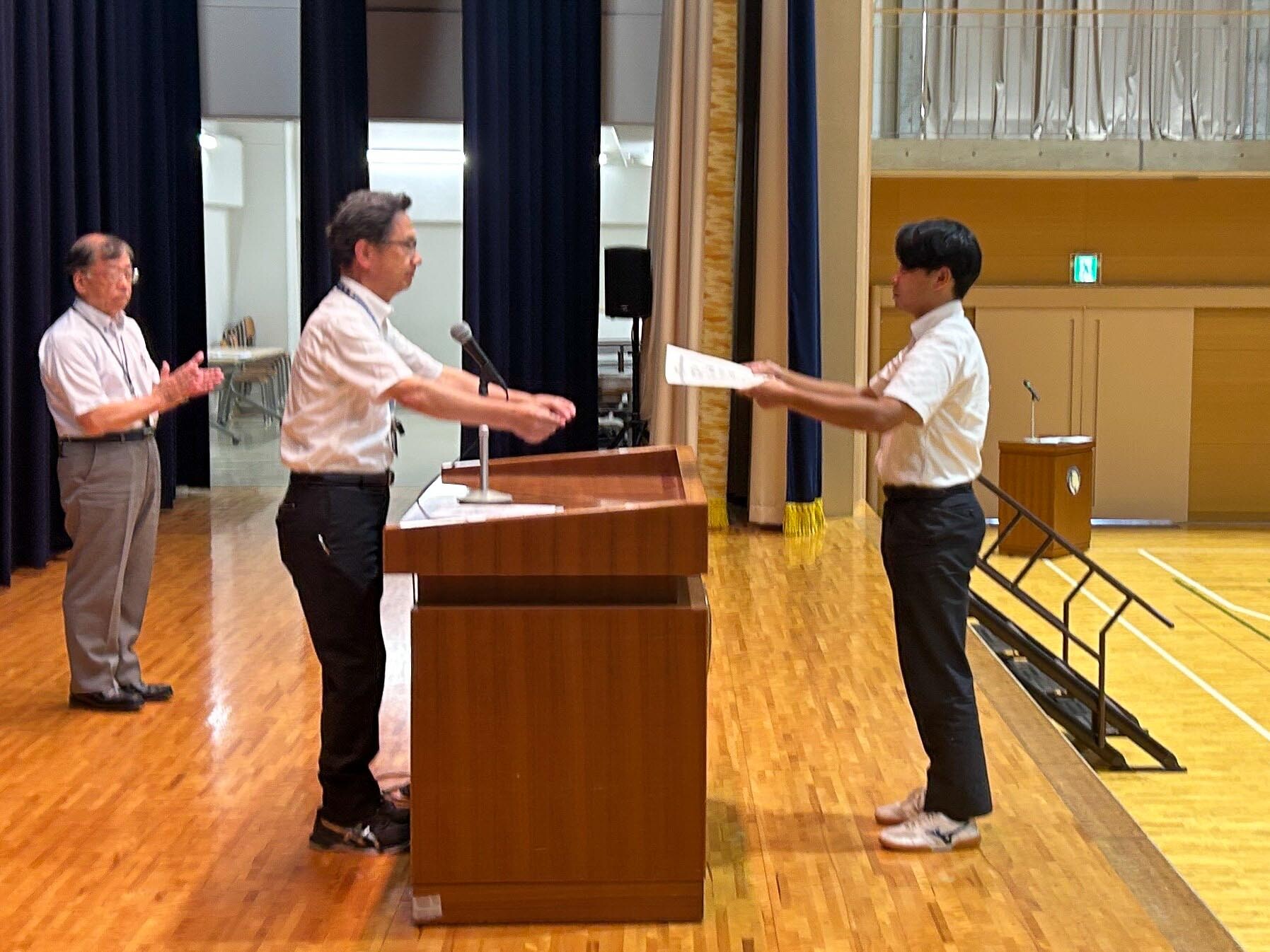 賞状を受けた生徒もそれに届かなかった生徒たちも皆、勝ち負けに関わらず、真剣に戦った姿は多くの人に感動を与えたことと思っています。