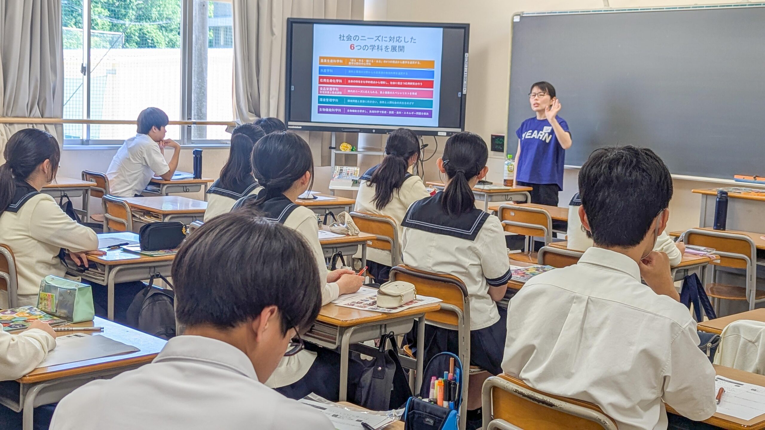 6月20日(金)5~7限でY2(高1)・Y3(高2)を対象に大学模擬授業を実施しました。看護学・工学・教育学・経済学・食物学・農学・法学・薬学・建築学・情報学・国際学(医学部は後日、別形式で開催)などの講座から2講座を選び、受講しました。各大学よりお招きした先生方は、講義資料を様々に工夫していただき、専門分野の学術研究を高校生にもわかりやすく解説していただきました。