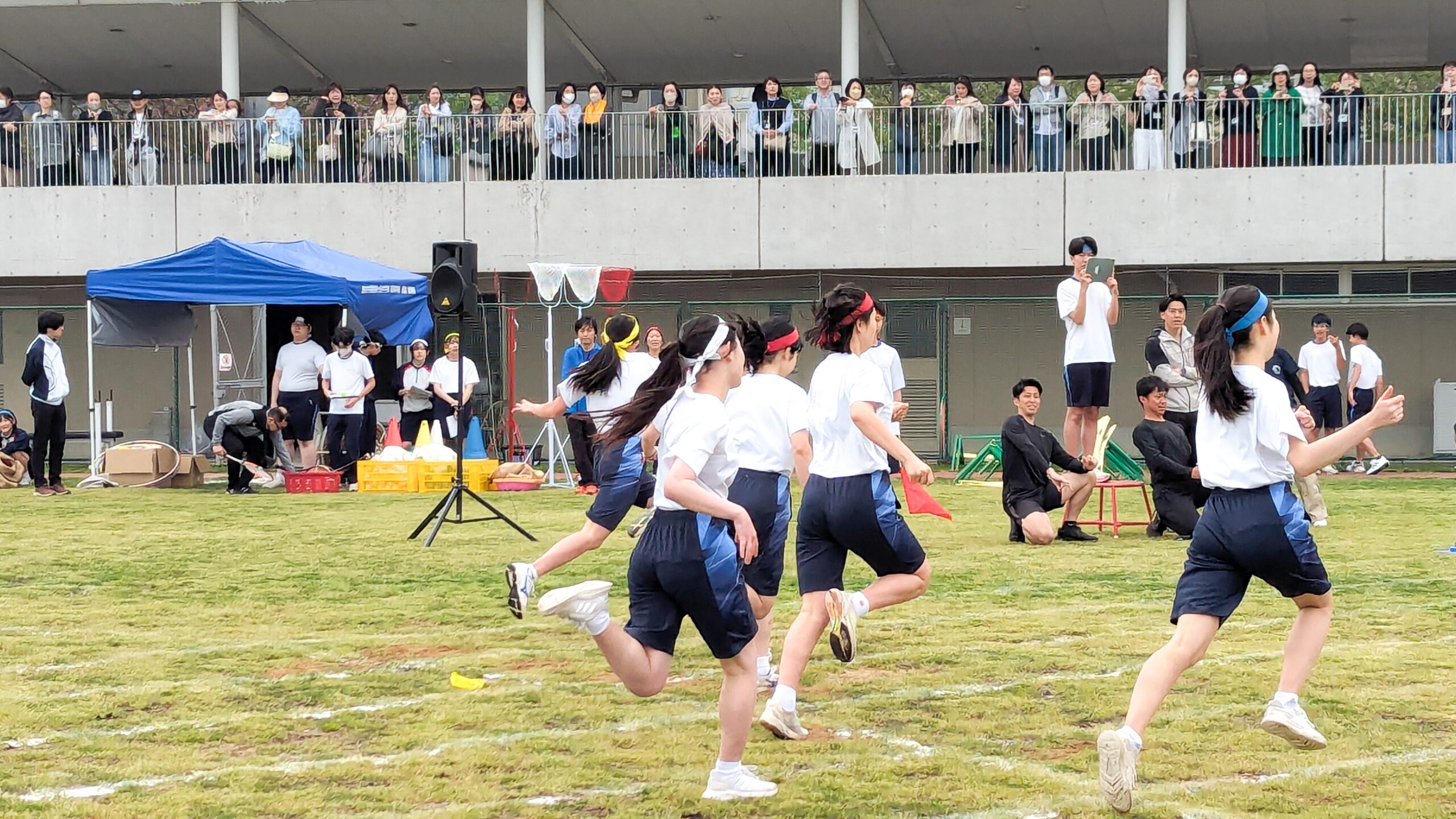 本校の体育大会は、運動が得意な人もそうでない人も、いつも誰一人として手を抜くことなく全力で競技に参加し、チームを力いっぱい応援する見ごたえのある大会です。