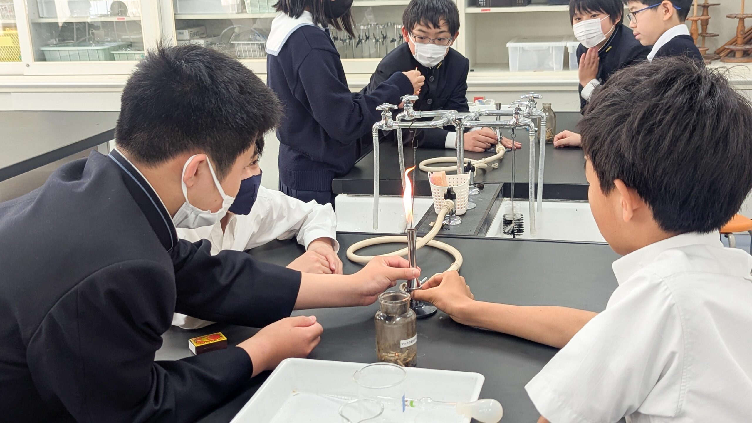 M3(中1)は入学して2週間が経ち、少しずつ授業にも慣れ始めた頃かと思います。理科の授業では化学室でガスバーナーの使い方の実習授業がありました。マッチのつけ方、元栓、コック、ガス調節ねじと空気調節ねじの回し方を習ったあと、全員で実際にやってみました。1回でうまく火を青くできた人、マッチで苦戦している人、それぞれですが声をかけ合って全員がうまくできました。これから様々な実験が始まります。お楽しみに!