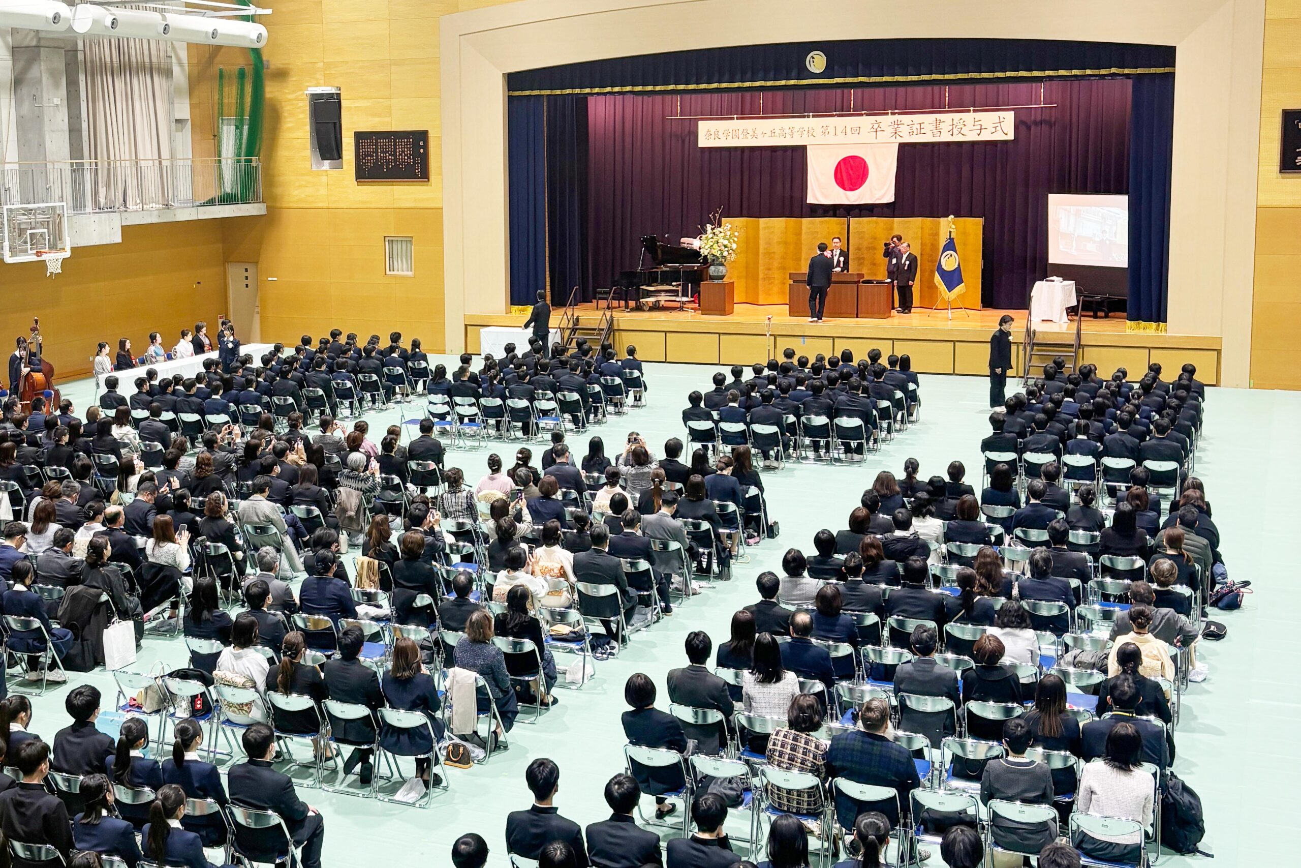 3月3日、奈良学園登美ヶ丘高等学校第14回卒業証書授与式を挙行いたしました。早朝より風雨の幕開けとなりましたが、心は晴れやかに、すがすがしく卒業生を送り出しました。