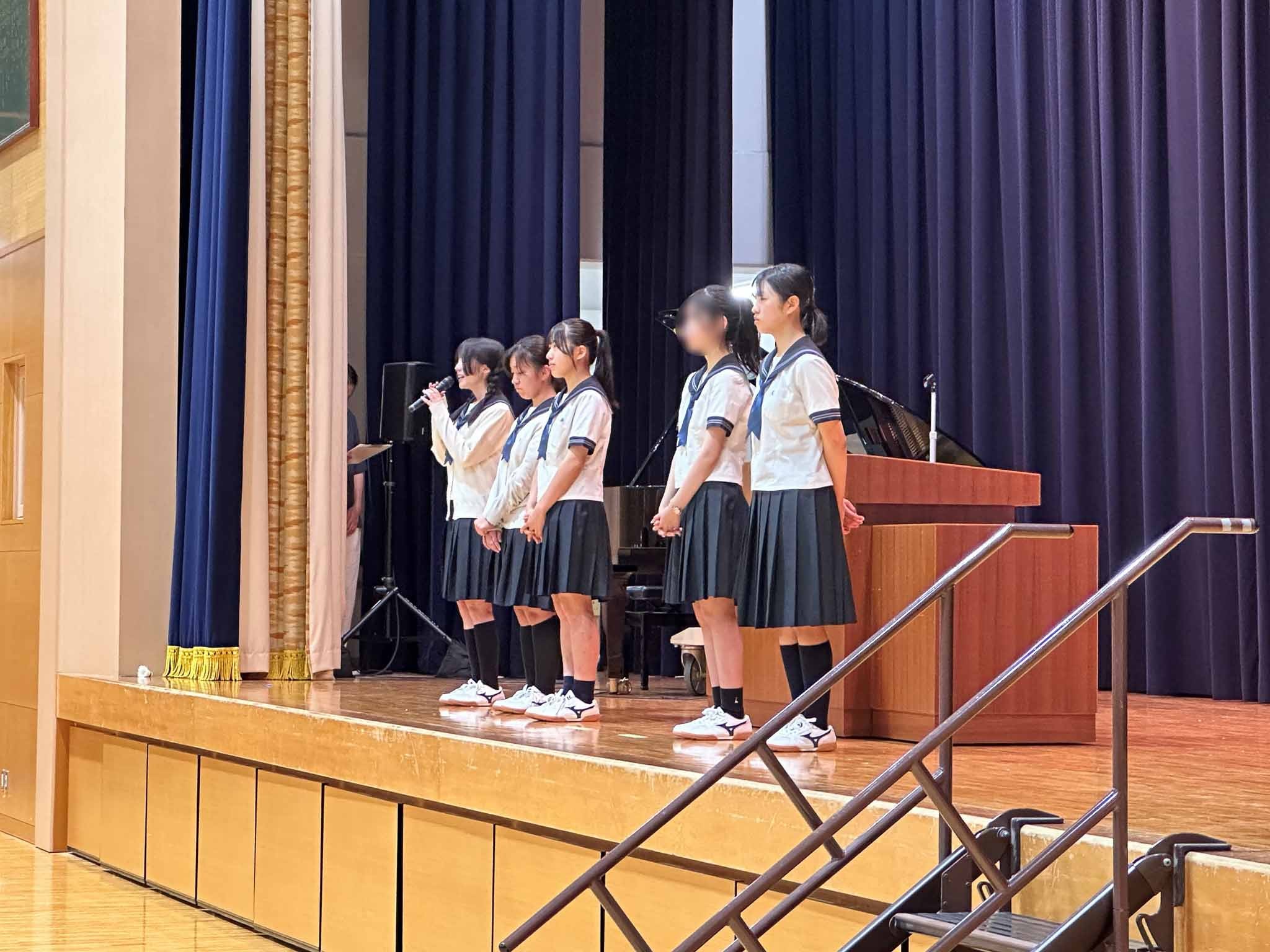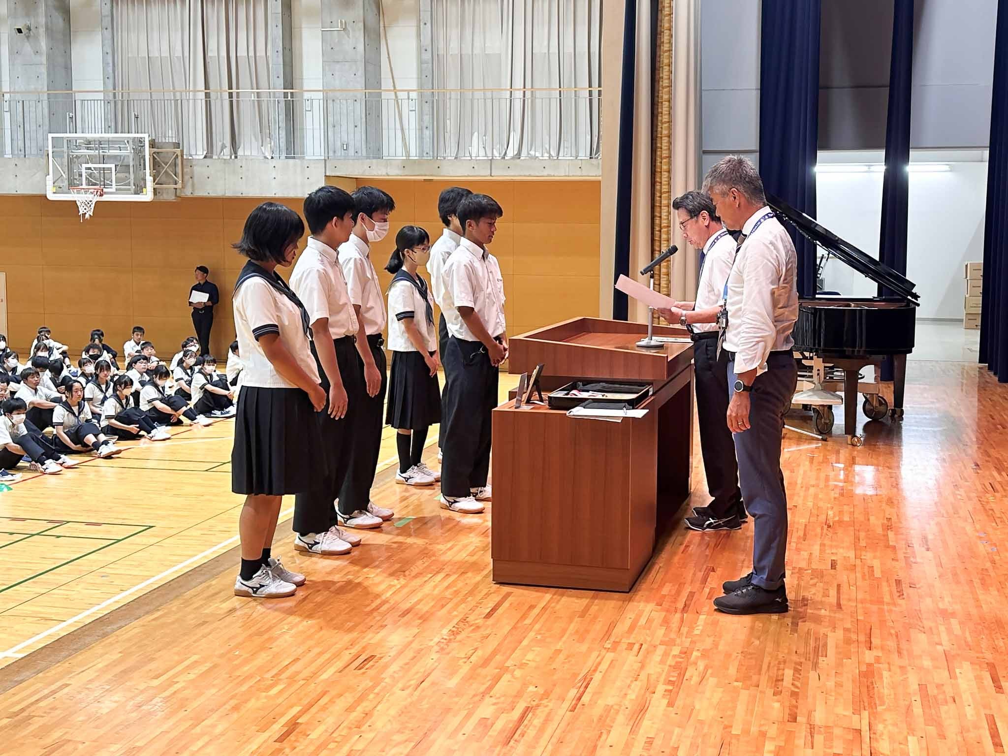 式後、近畿高校総合文化祭に出場する競技かるた部と放送委員会の壮行会が生徒会主催で行われました。大会は11月に福井県で開催されます。これから3カ月、さらに力と技を磨いてほしいと思います。