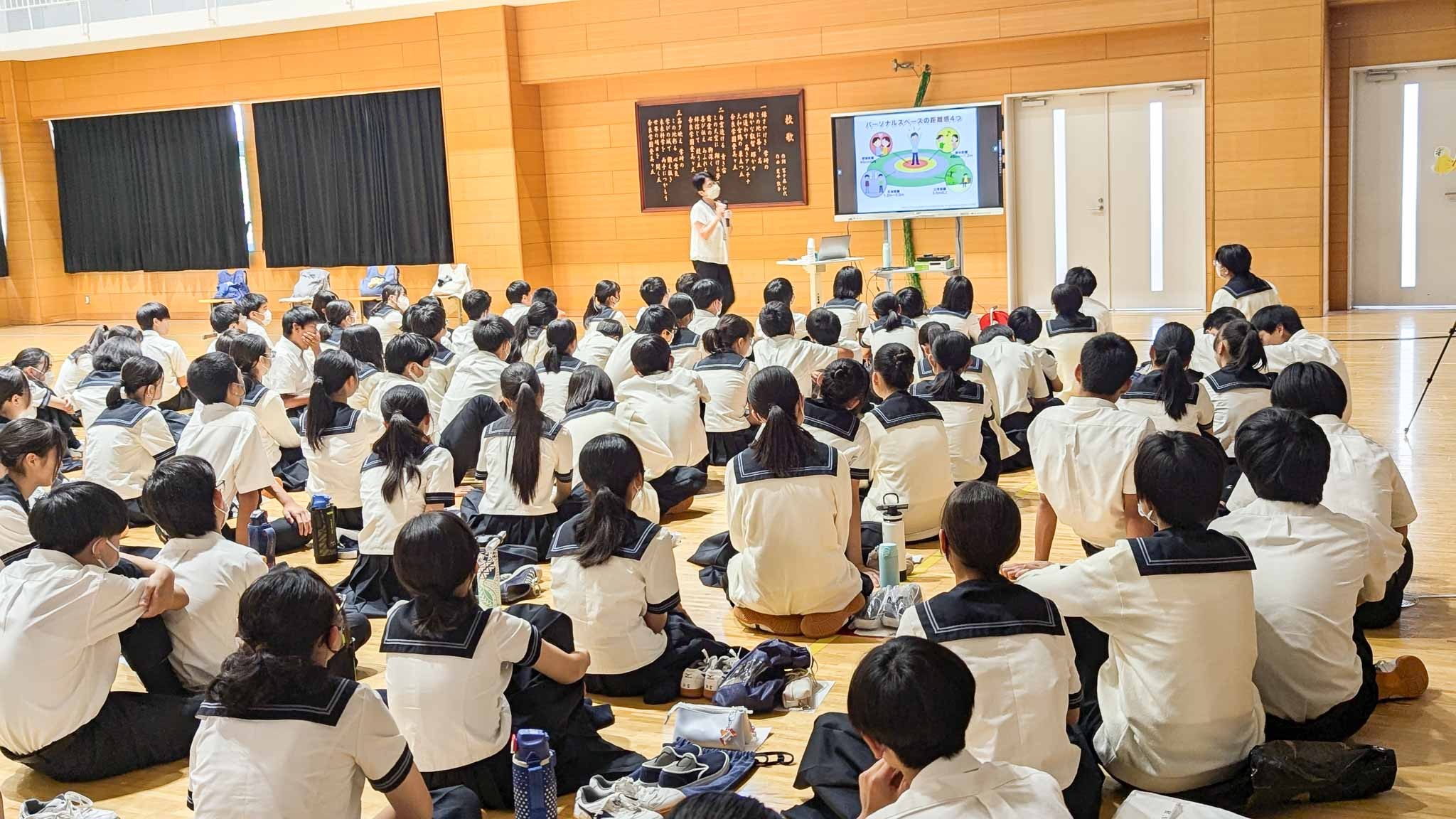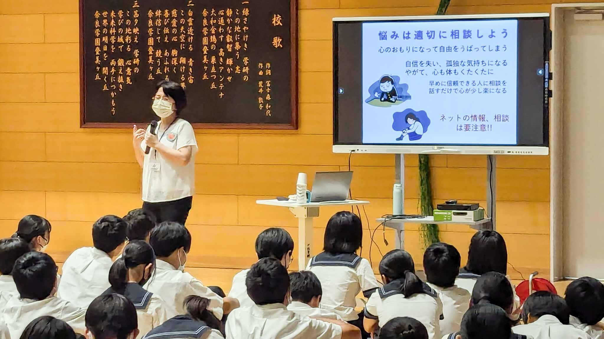 7月25日、M4学年(中2)で「命の授業」を実施しました。この授業は人間の性の成熟について理解するとともに、発達途上にある自分の性を受け入れ、自他を大切にする気持ちをもって行動できるようになることを目的としています。講師は奈良県助産師会「ハートポケット」の助産師をお招きして、前半は思春期に多い悩み、不安定な心の対処の仕方、恋愛と性のとらえ方について、生徒たちによくありそうな具体的な場面を設定しながらお話しいただきました。