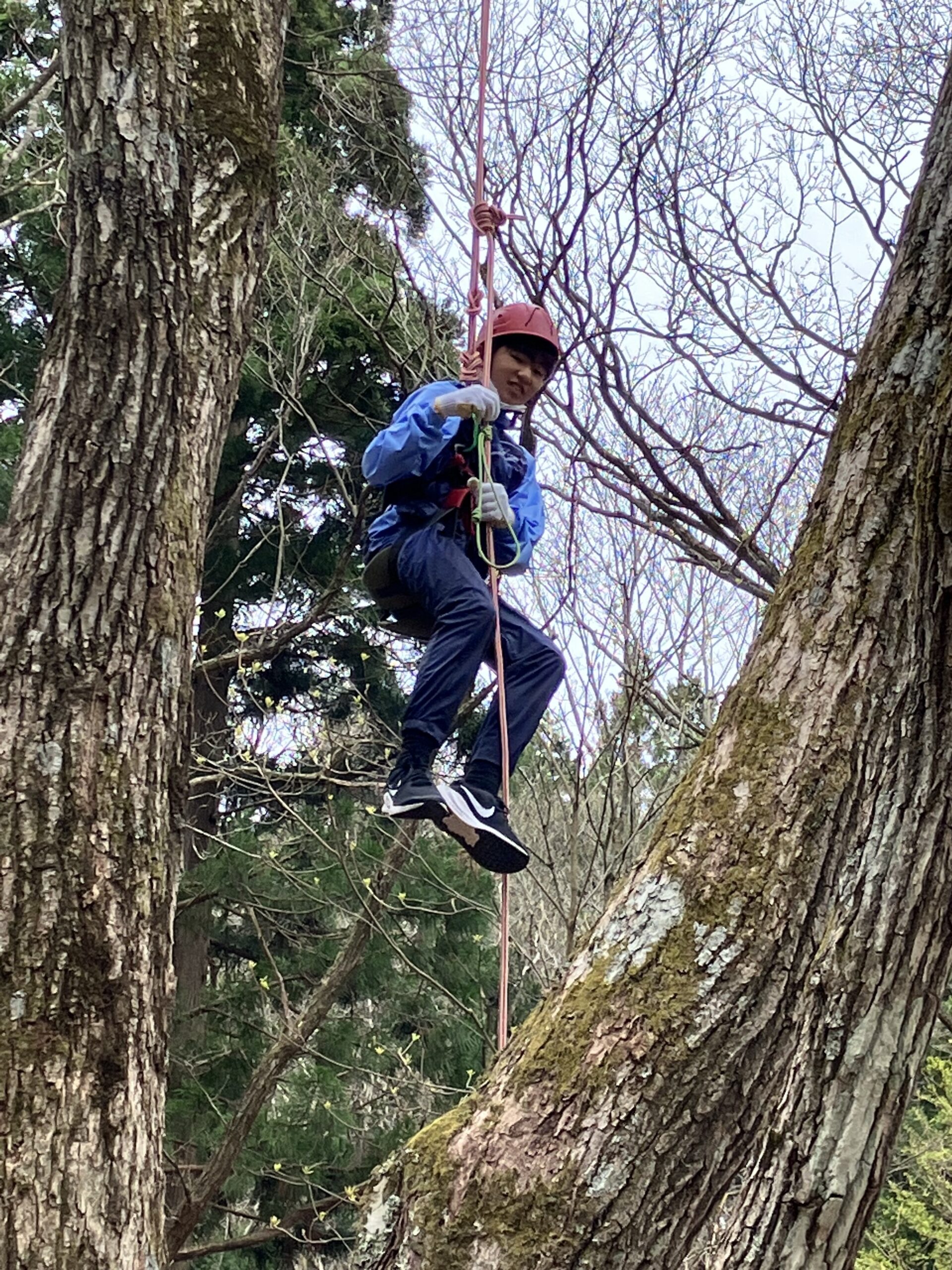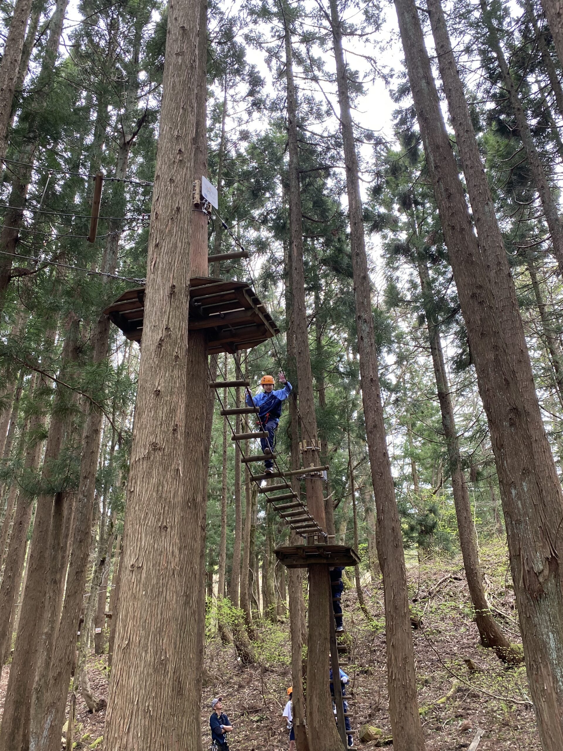 1日目は開校式の後、ネイチャースクール(アルプスアドベンチャー、ツリークライミング、箸作り、勾玉、木の葉染めの中から選んで体験)を行いました。