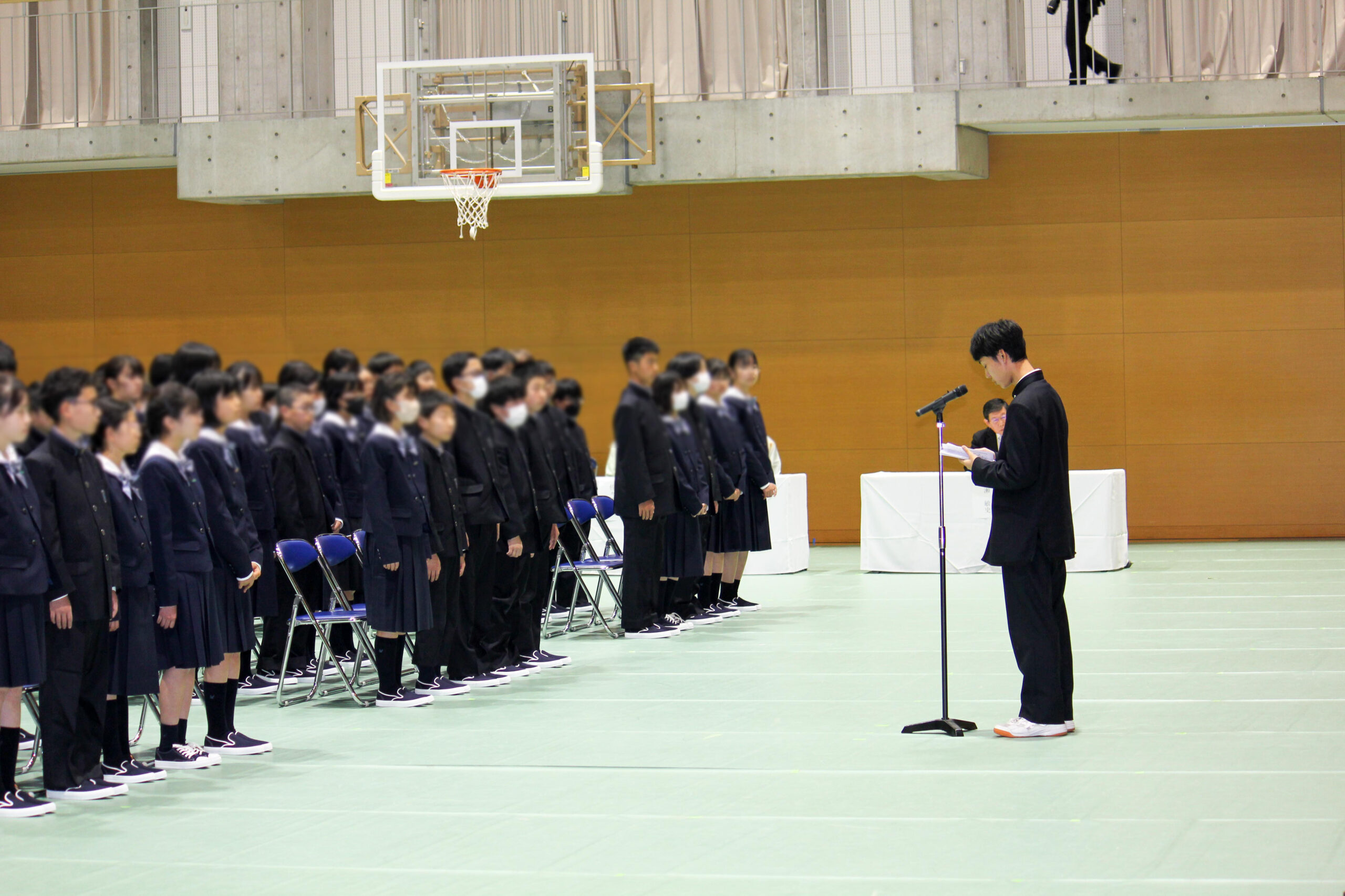 新入生代表生徒は、「より一層難しくなる勉強や新しい環境に対する不安やつらいこともあるかもしれませんが、仲間と共に協力し合い、支え合い先生方や先輩の力も借りながら前に進んでいきます。」と力強く誓ってくれました。
