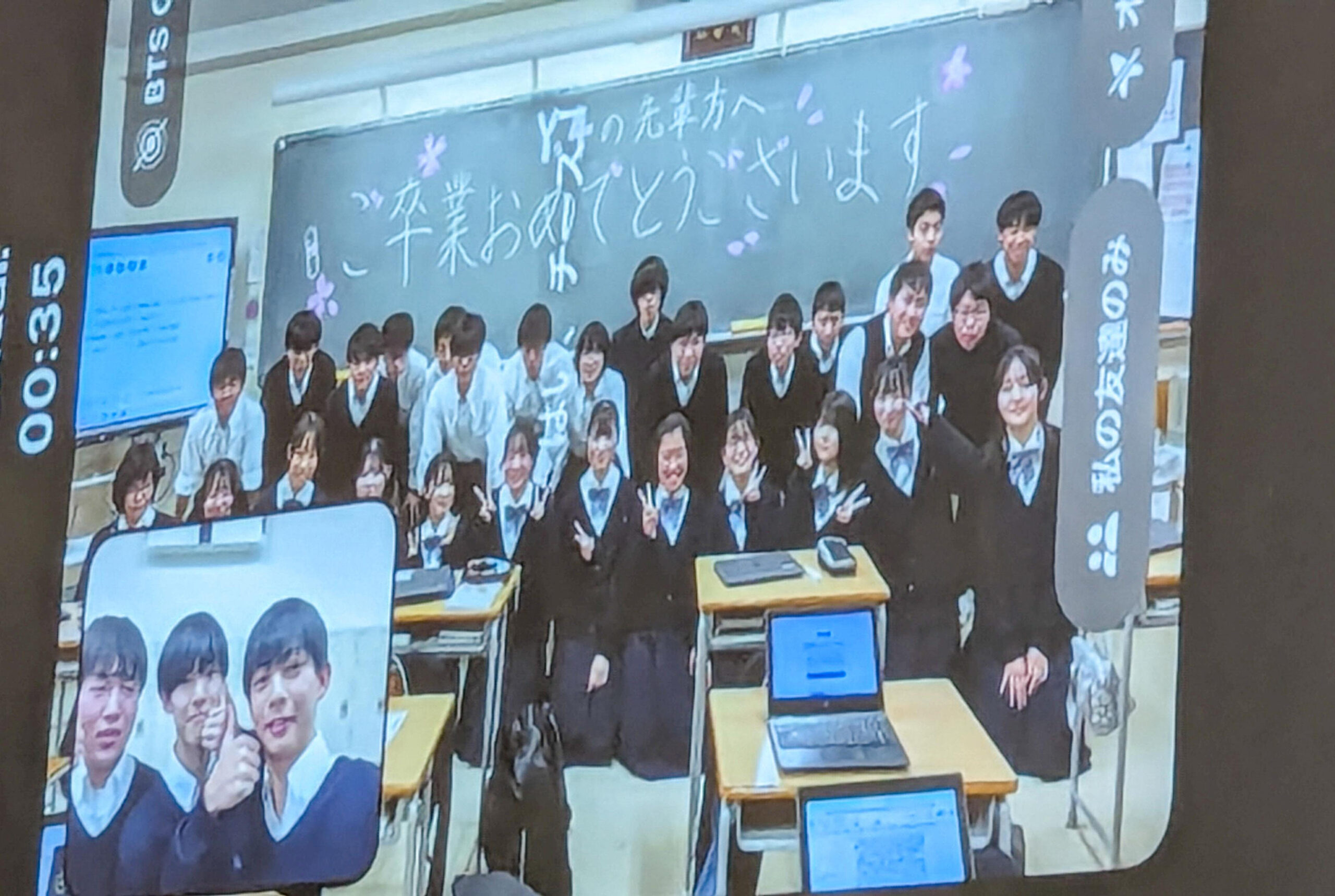 前日の予餞会では、在校生たちが心のこもったビデオメッセージやバンド演奏を披露してくれました。笑いあり感動ありの力作ぞろいで、お世話になった先輩に感謝の思いが伝わったことと思います。