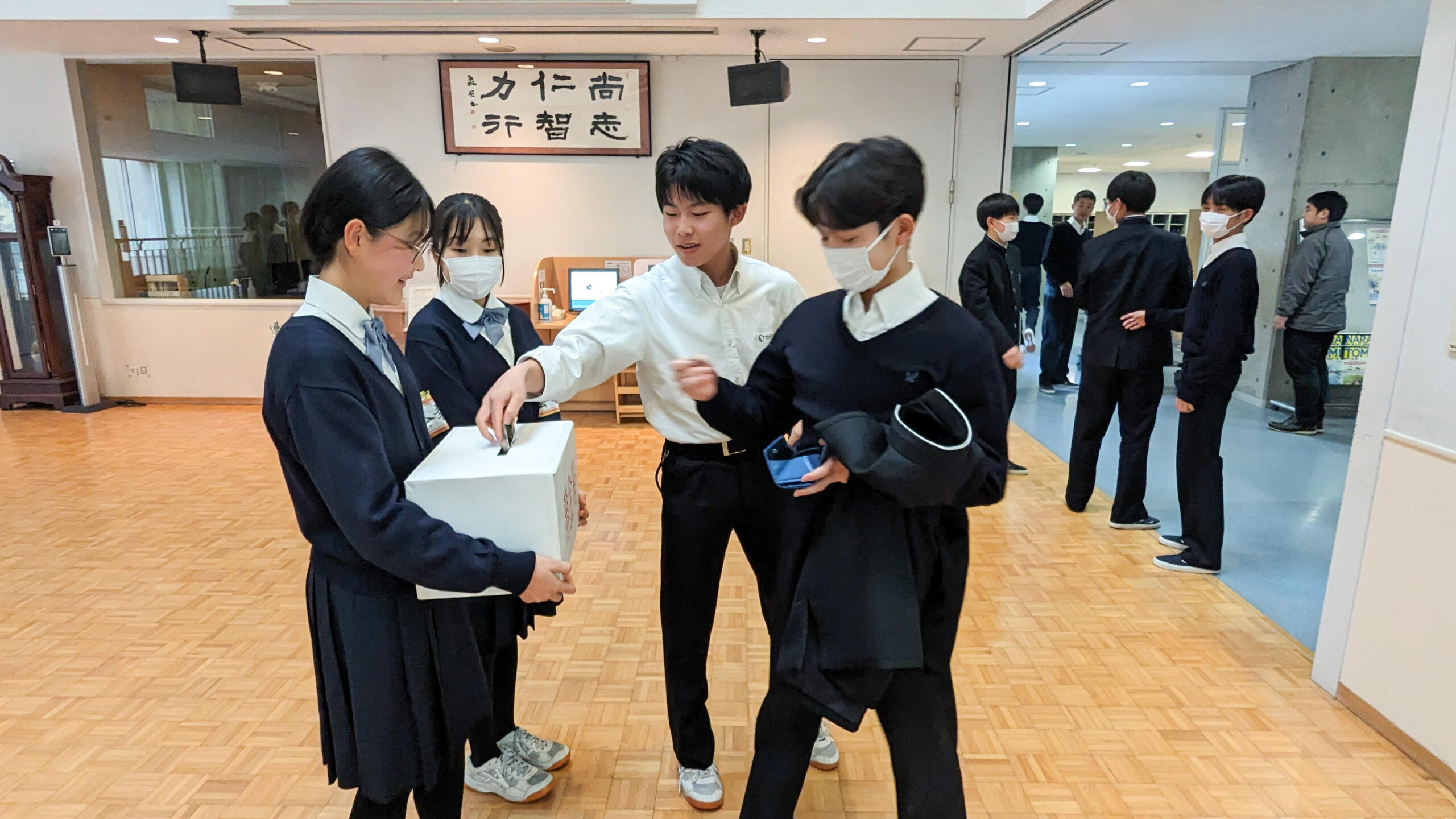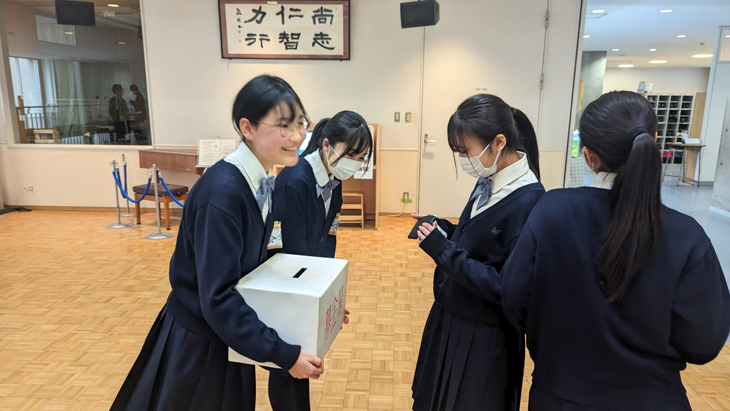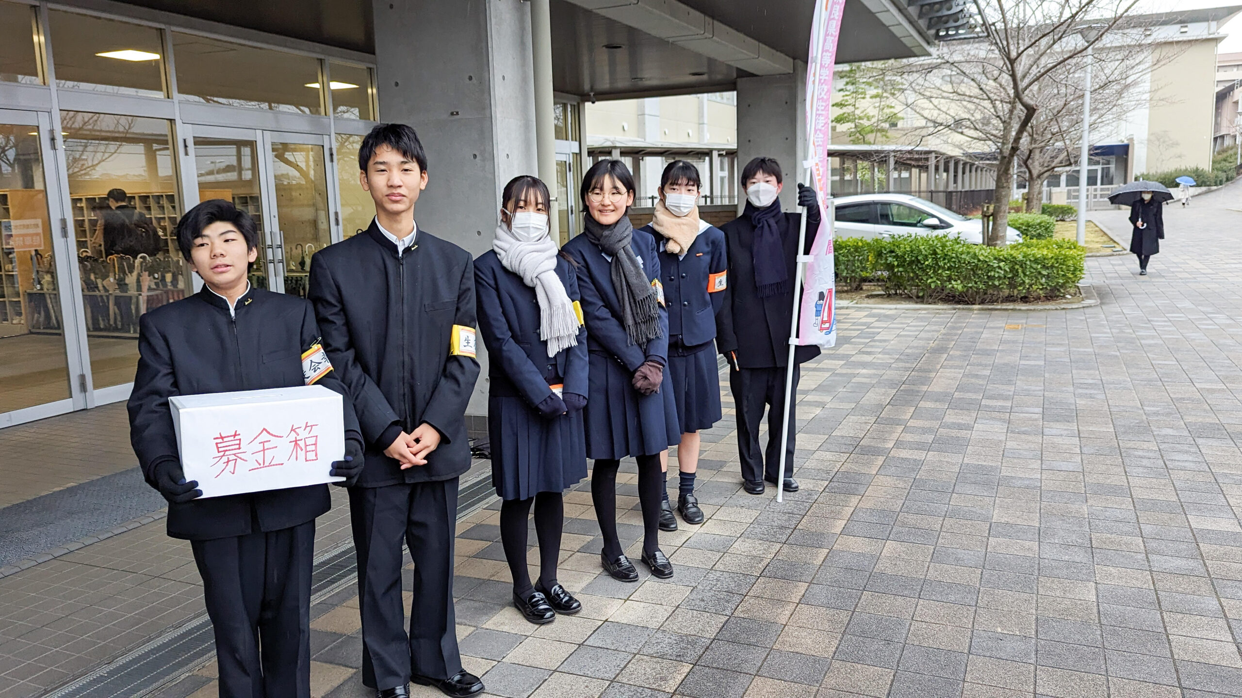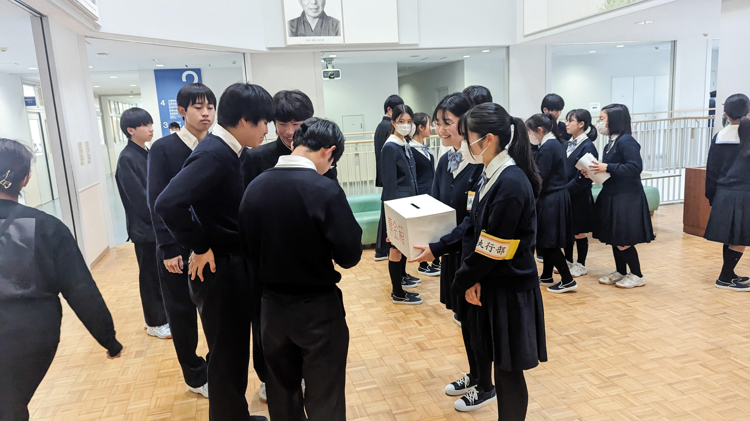 本校では、生徒会本部役員のメンバーが自主的に震災被害への支援のための募金活動を始めてくれました。期間は1週間、朝の登校時と昼休みに昇降口とサイエンスホールで支援を呼びかけます。様々な報道機関を通して目の当たりにする被災地の現状に対して、自分たちに何ができるかを考えた生徒たちの活動に私たちも協力して取り組んでまいりたいと思います。