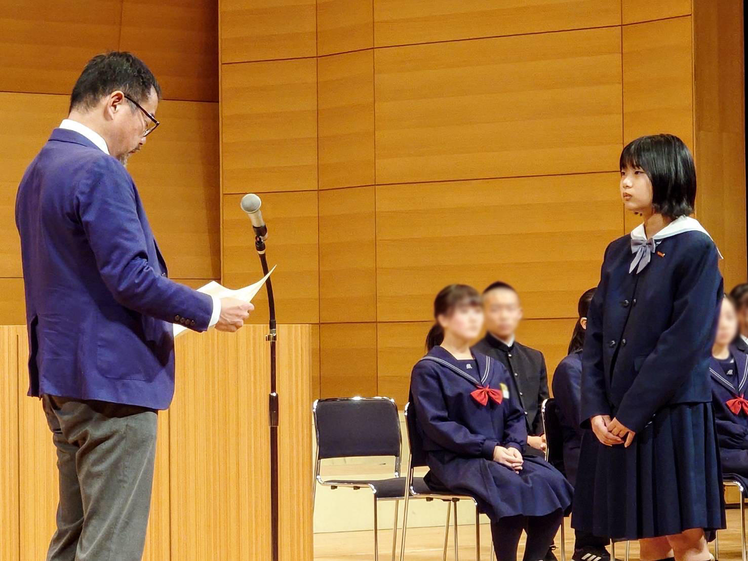全国中学生人権作文コンテスト奈良県大会で、9,848件の応募の中から本校M4生(中2)の作文が優秀賞(日本放送協会奈良放送局賞)に選ばれ、表彰式に参加しました。表彰式は人権週間行事「人権のつどい」の一環として大和高田市のさざんかホールで行われ、近隣小学校の金管クラブや中学校の吹奏楽部の合同演奏会も行われました。