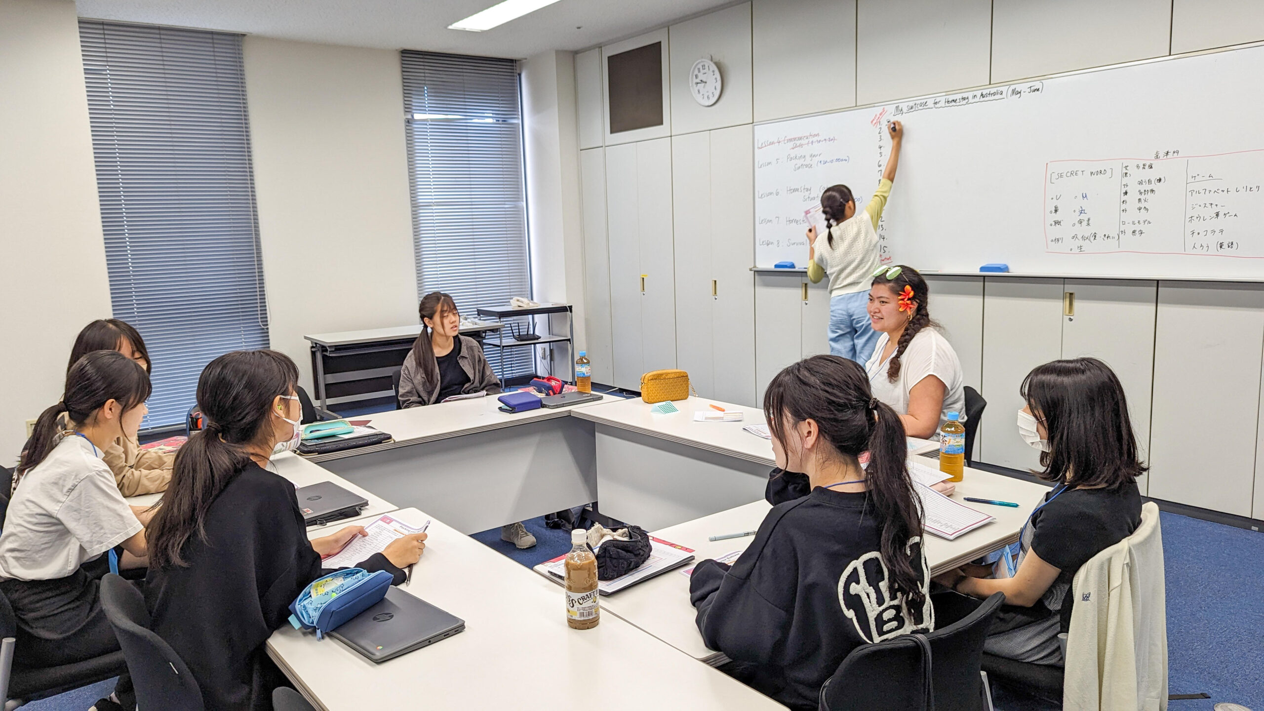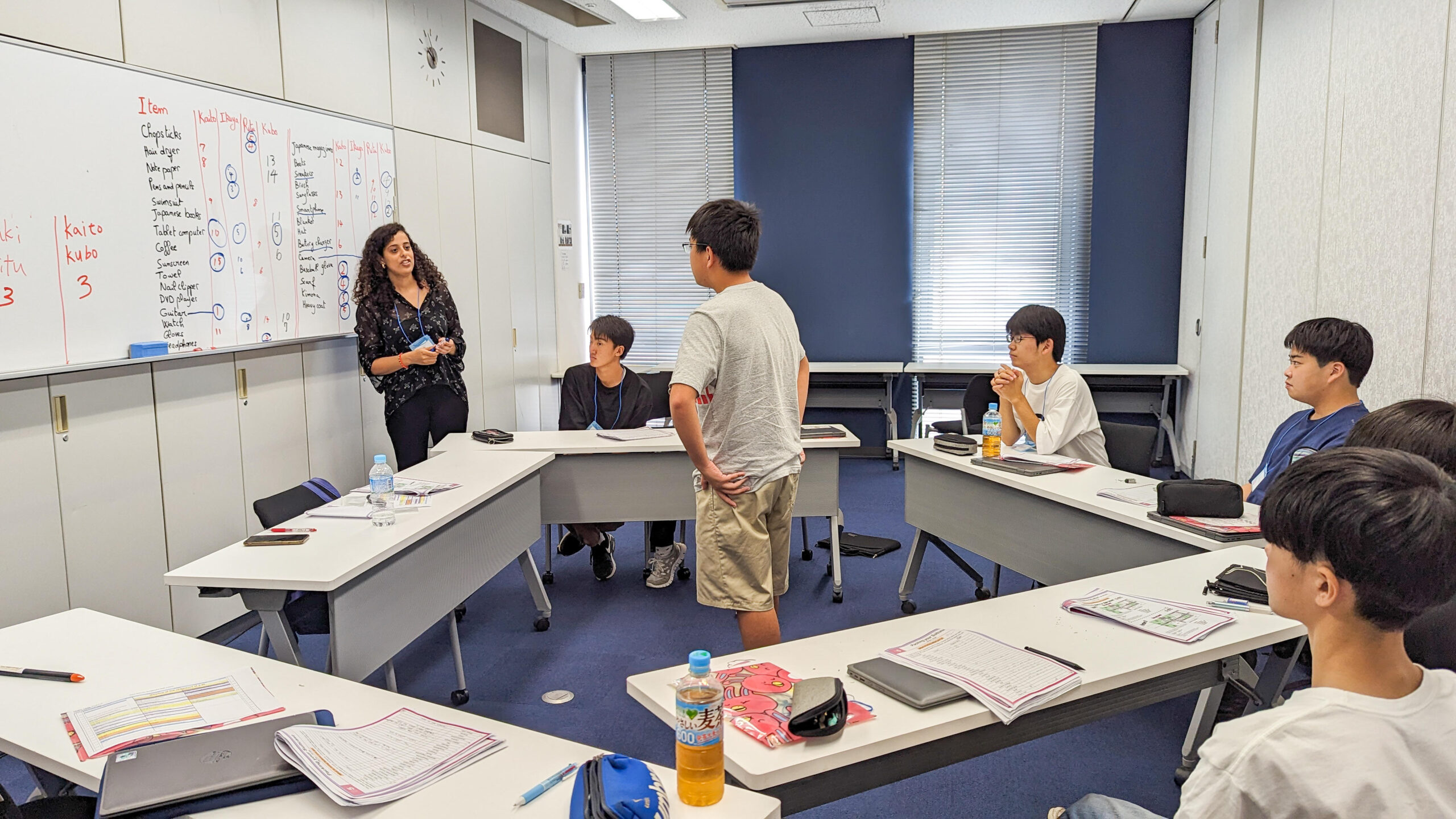生徒7~8人のグループに一人のネイティブ講師が付き、Lesson1:Passport and customs、Lesson2:Getting to know your teacherから始まり、Communication skill、Homestay Situation、Money and Shopping、Ordering in a restaurantと海外研修中の様々な場面を想定してのレッスンが続き、Breakfast(Lunch、Dinner) with your teachers、Taking a walk outside with your teacherの生活で、一日中講師とともに、Lesson13:Presentation!(Japanese culture)、Lesson14:Reviewに至るまで、まさに英語漬けの三日間を過ごしました。
