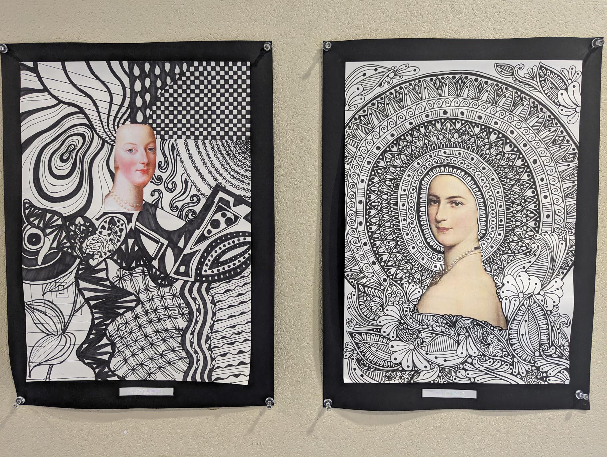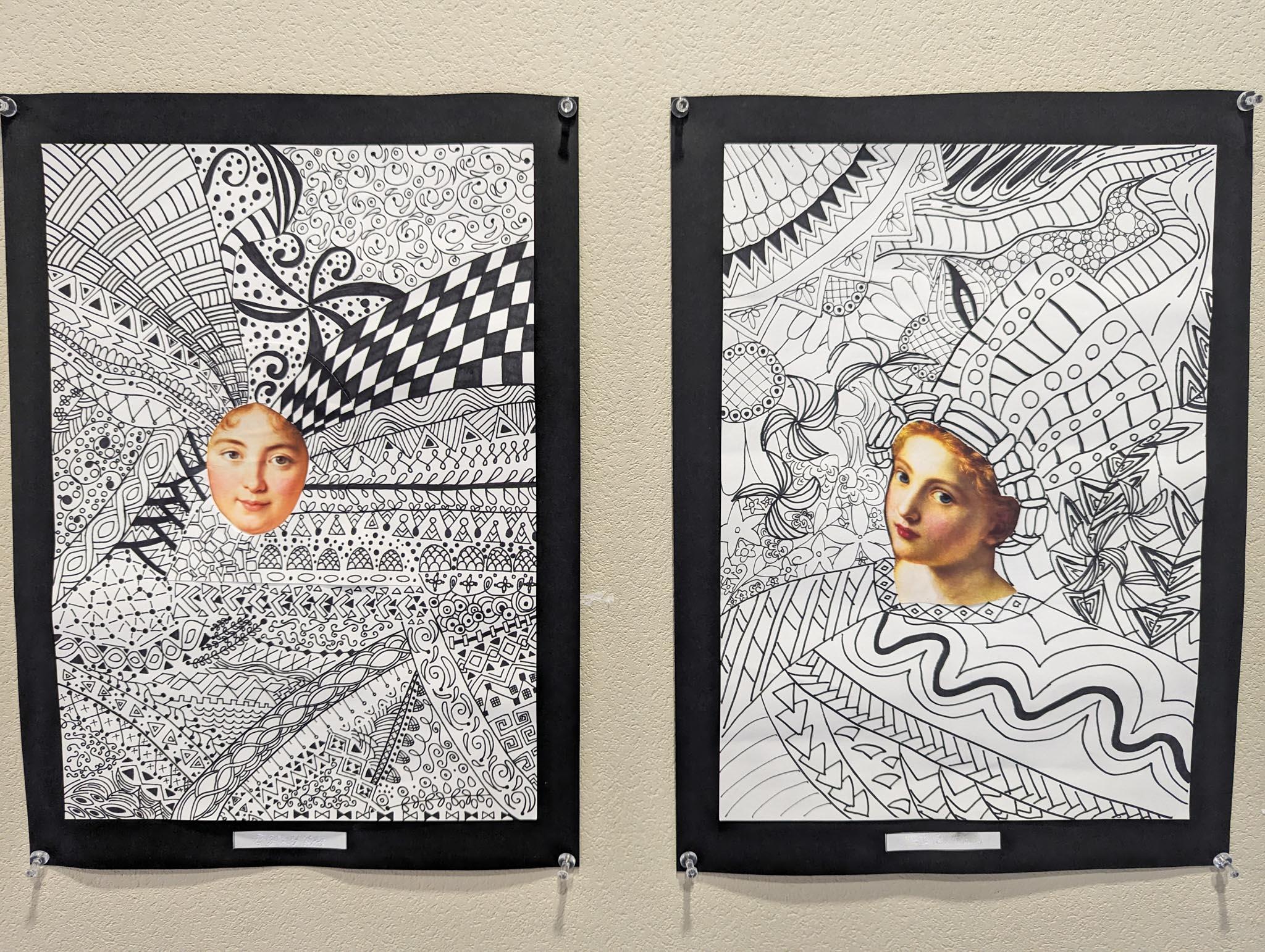 自分の顔または好きな画家の顔に黒ペンを使ってすきな文様をどんどん広げて描いていった作品です。