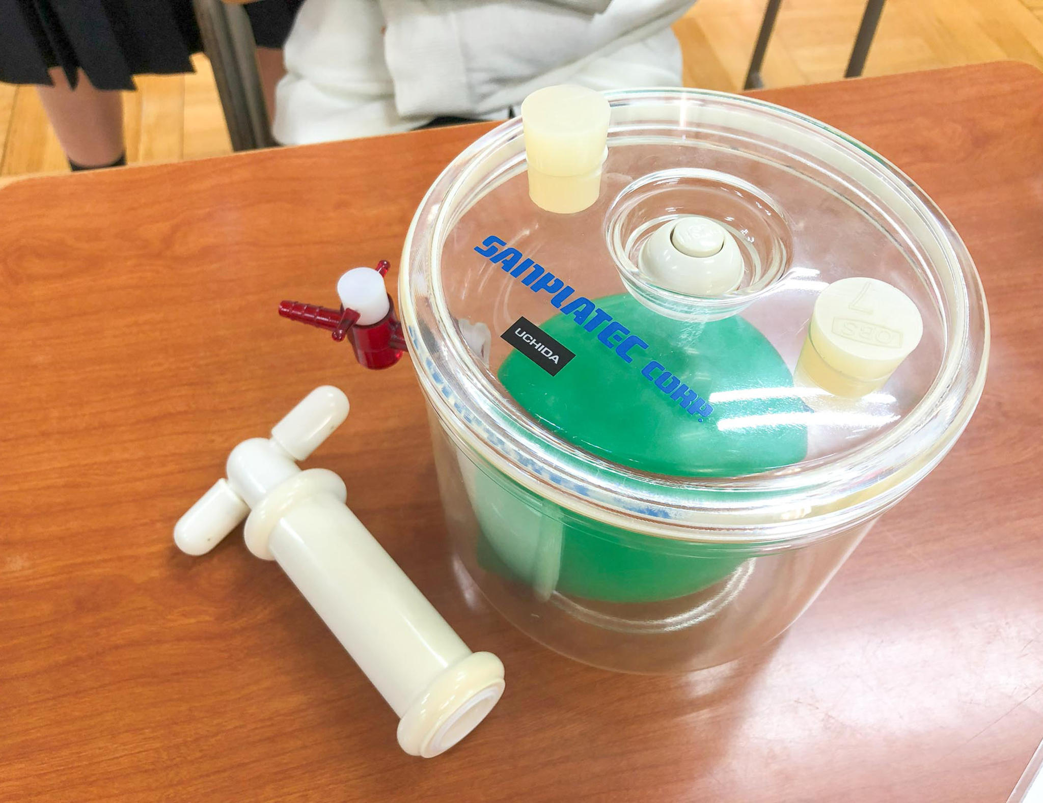 今年度の発表テーマは「今さら聞けない空気の消えた世界を教えます」で、空気がない真空の状態で起こる現象について、参加者に演示実験を行いました。