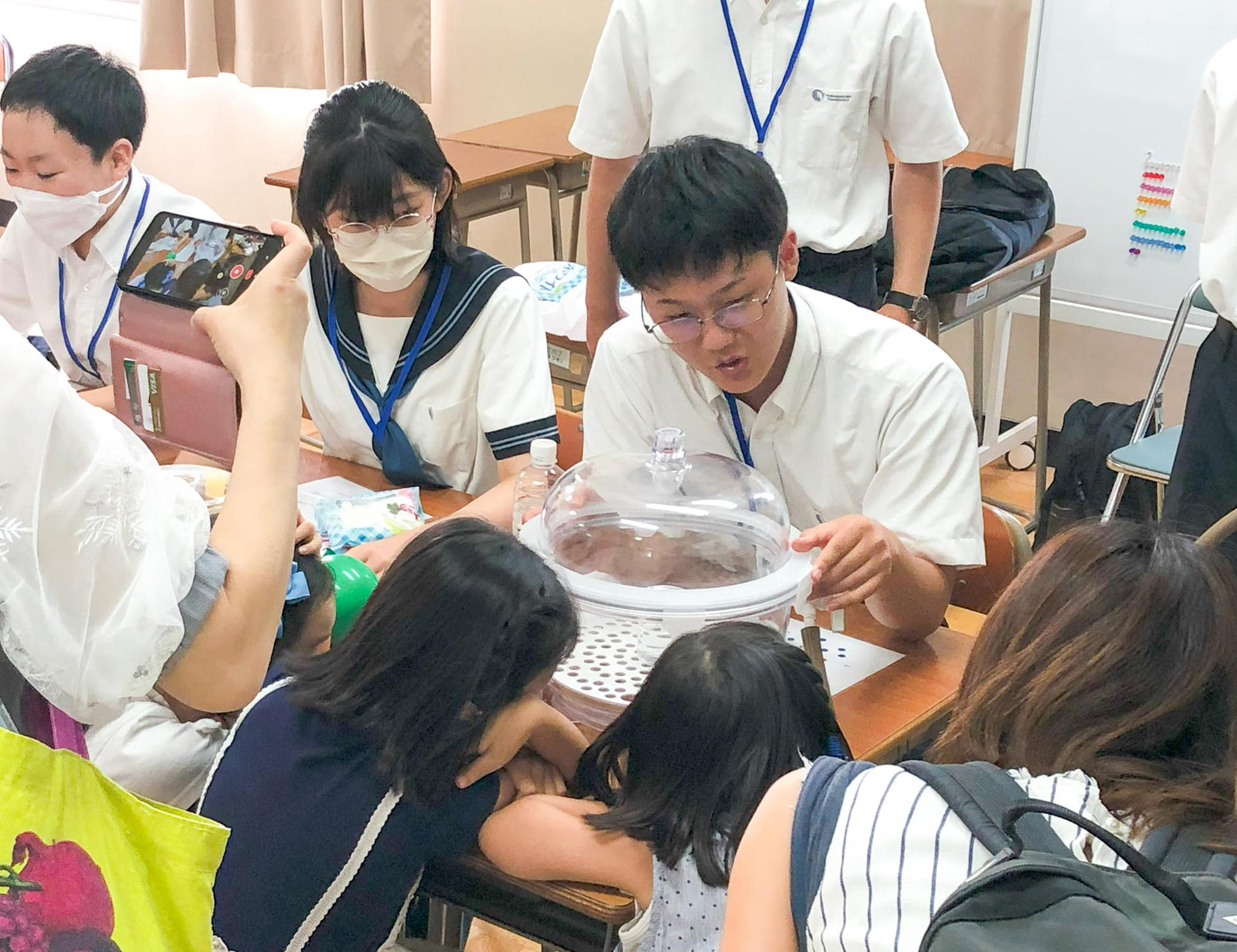 気圧をテーマとする実験であったため、中高生の参加者には原理まで理解してもらい、園児・児童の参加者には風船が膨らんだり、水が沸騰したりする変化を楽しく体験してもらいました。