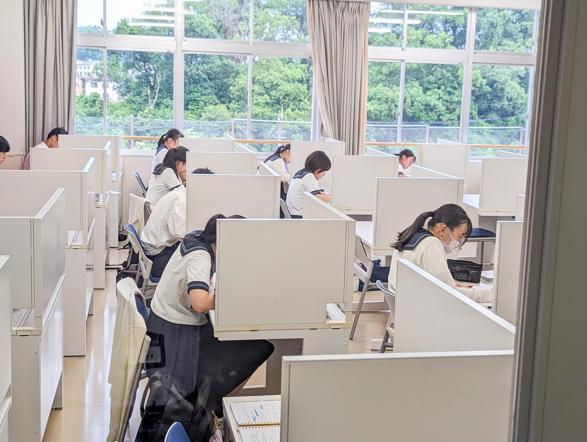 期末考査を目の前にして、自習室、尚志館が活気づいています。それぞれの目標を持って、お互いに助け合い励まし合う仲間として、また互いに刺激し合うライバルとして、勉強に打ち込む姿は頼もしく映りました。