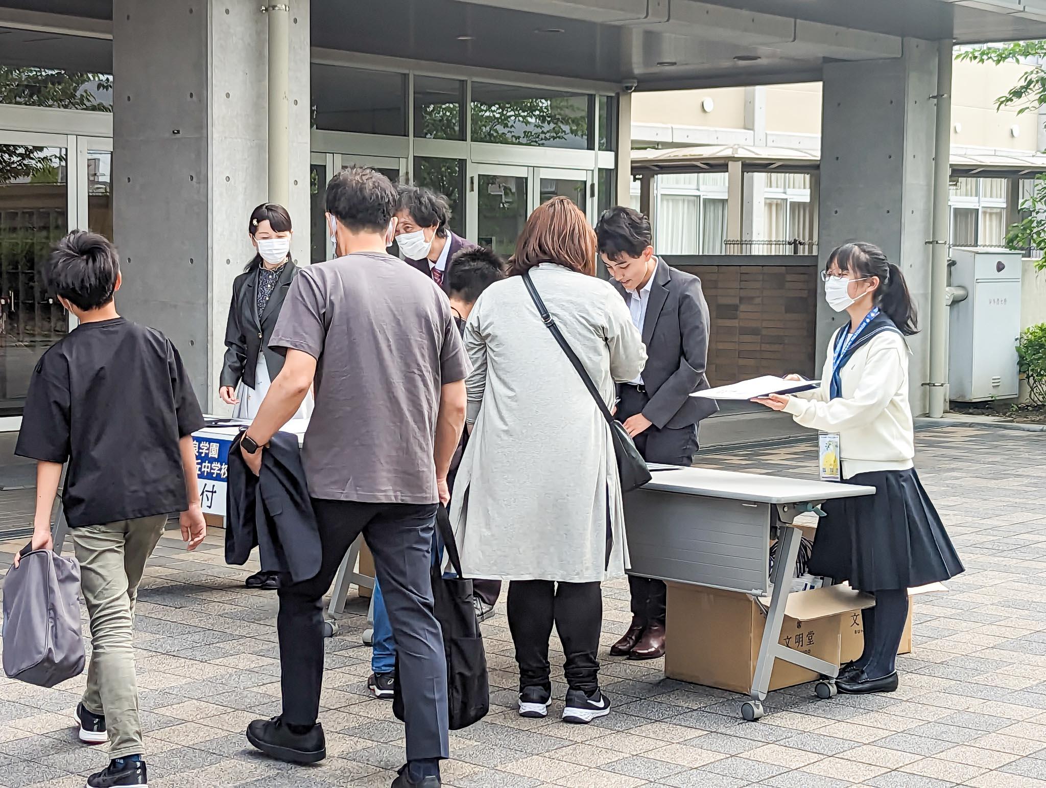 今年も5月20日(土)午後、学校見学会・説明会を開催し、200名を超える児童・保護者にご来校いただきました。生徒有志の広報活動ボランティア”チームなとみん”のメンバーたちも、おもてなし精神と親切丁寧は対応に心がけながら、受付・案内などで協力してくれました。