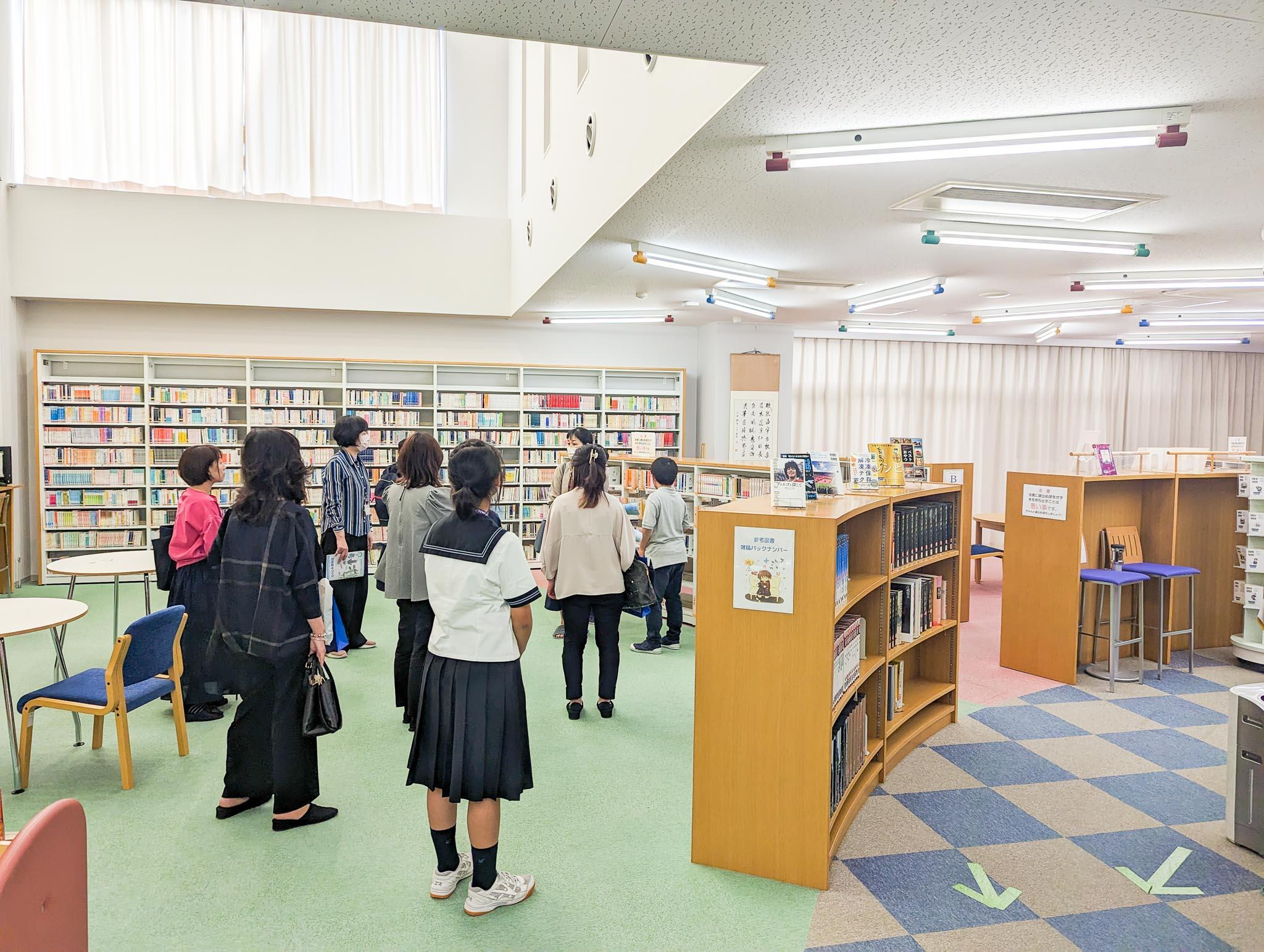 学校見学は、少人数に分かれていただき、各グループに担当教員と”チームなとみん”の生徒を配して、質問などを受けながら校内外の施設・設備をご覧いただきました。