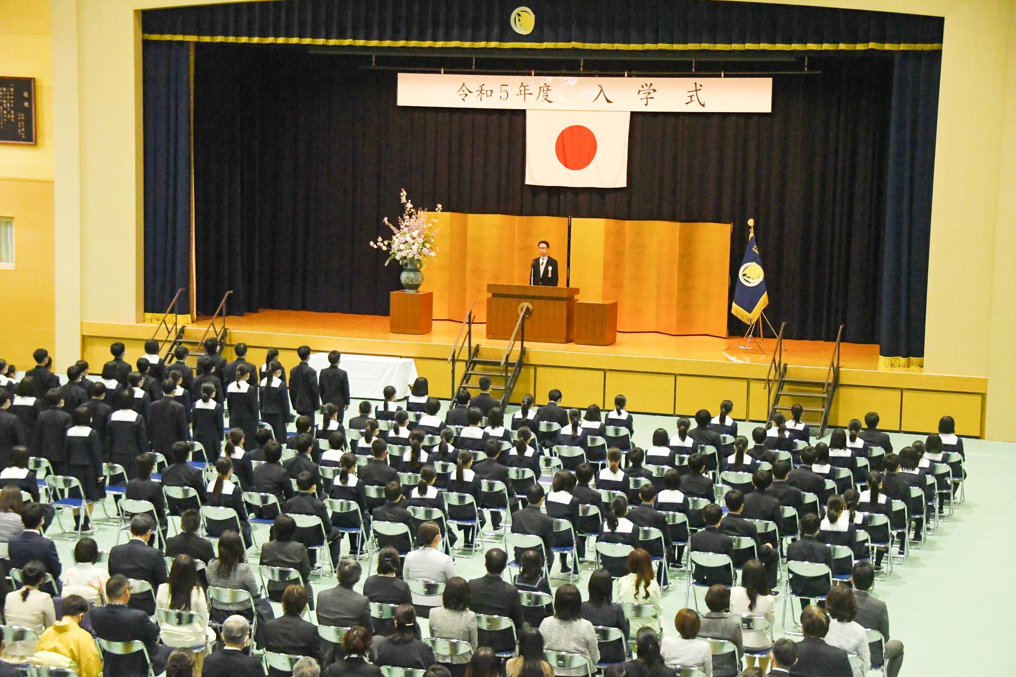 入学式では、新入生代表生徒が「新しい仲間との生活や勉強に不安や思い悩むこともあるかもしれませんが、自分を見失うことなく、ここにいる仲間や先輩方の背中を見て、必ず乗り越えていきます。」と力強く誓ってくれ、在校生代表からは「皆さんがこれからかかわっていく、たくさんの人や物事のどれもがあなたの成長に役立つことでしょう。本校での出会いに感謝し、互いに学び合い、誇りをもって過ごされることを願います。」と温かな歓迎の言葉を述べてくれました。