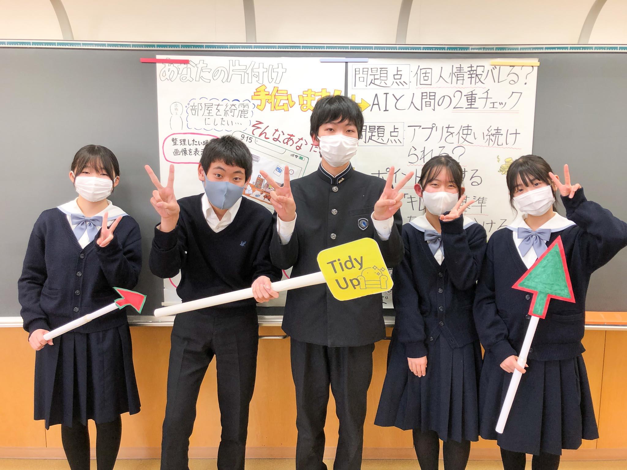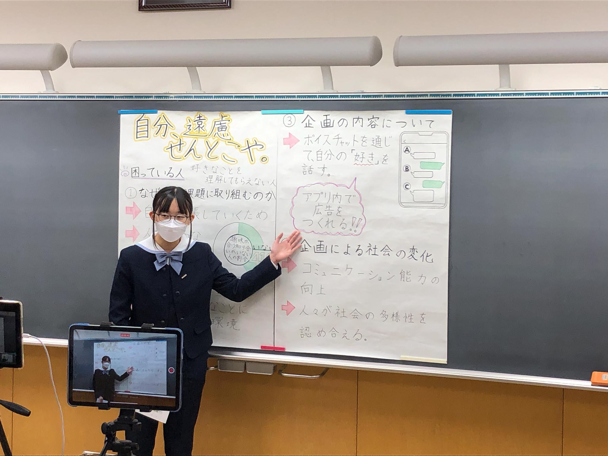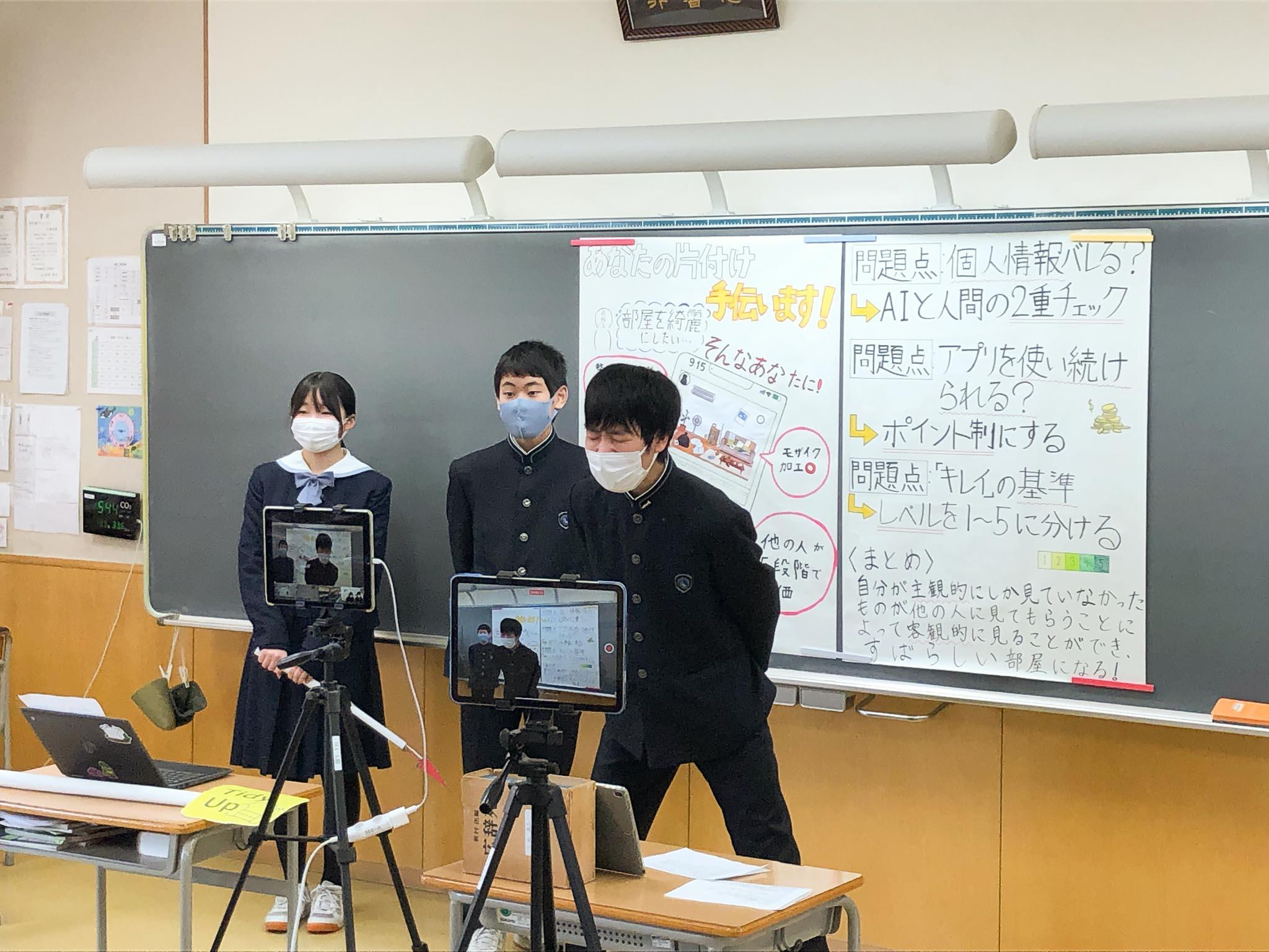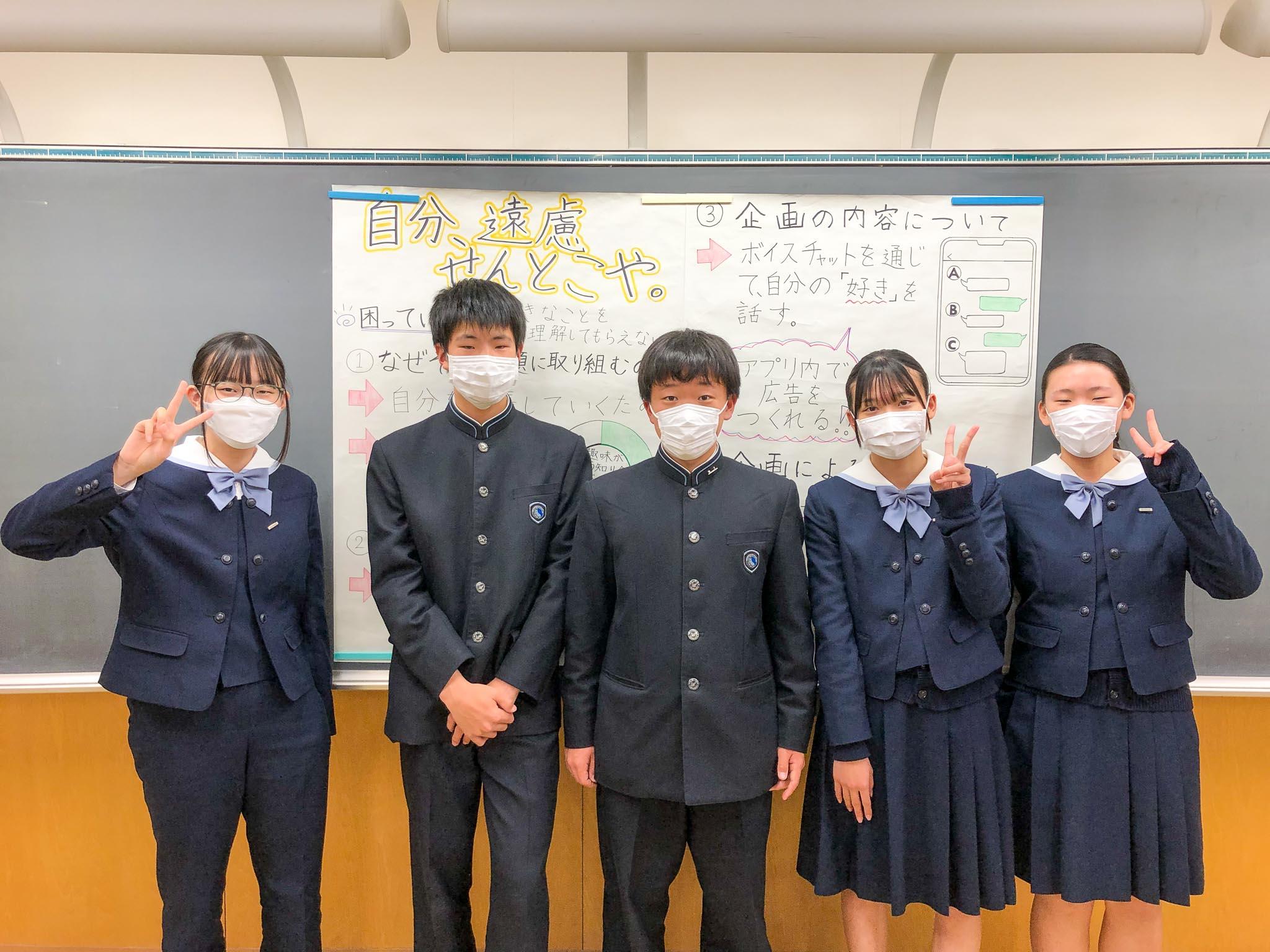 最後にこれまでの取り組みを振り返って、「班員で協力できた達成感があった」、「固定観念にとらわれず、柔軟な発想ができるようになった」「班員や他の発表者の様々な考えに触れることができた」「自分の意見を自信を持って伝えられるようになった」などといった意見が、両チームから出ていました。他校の高校生・中学生の探究成果からも大いに刺激を受け、様々な価値観を知ることができた良い機会となりました。