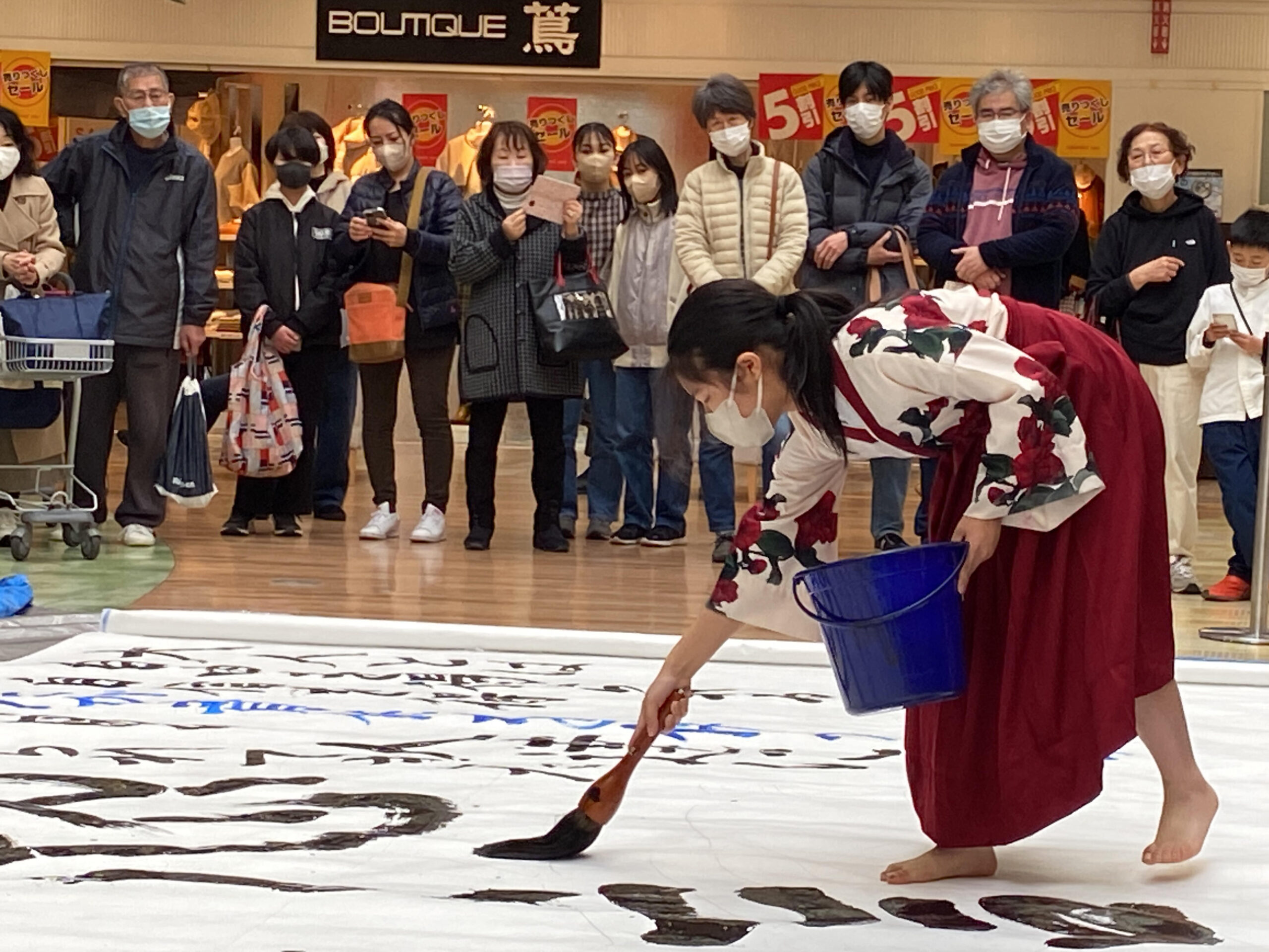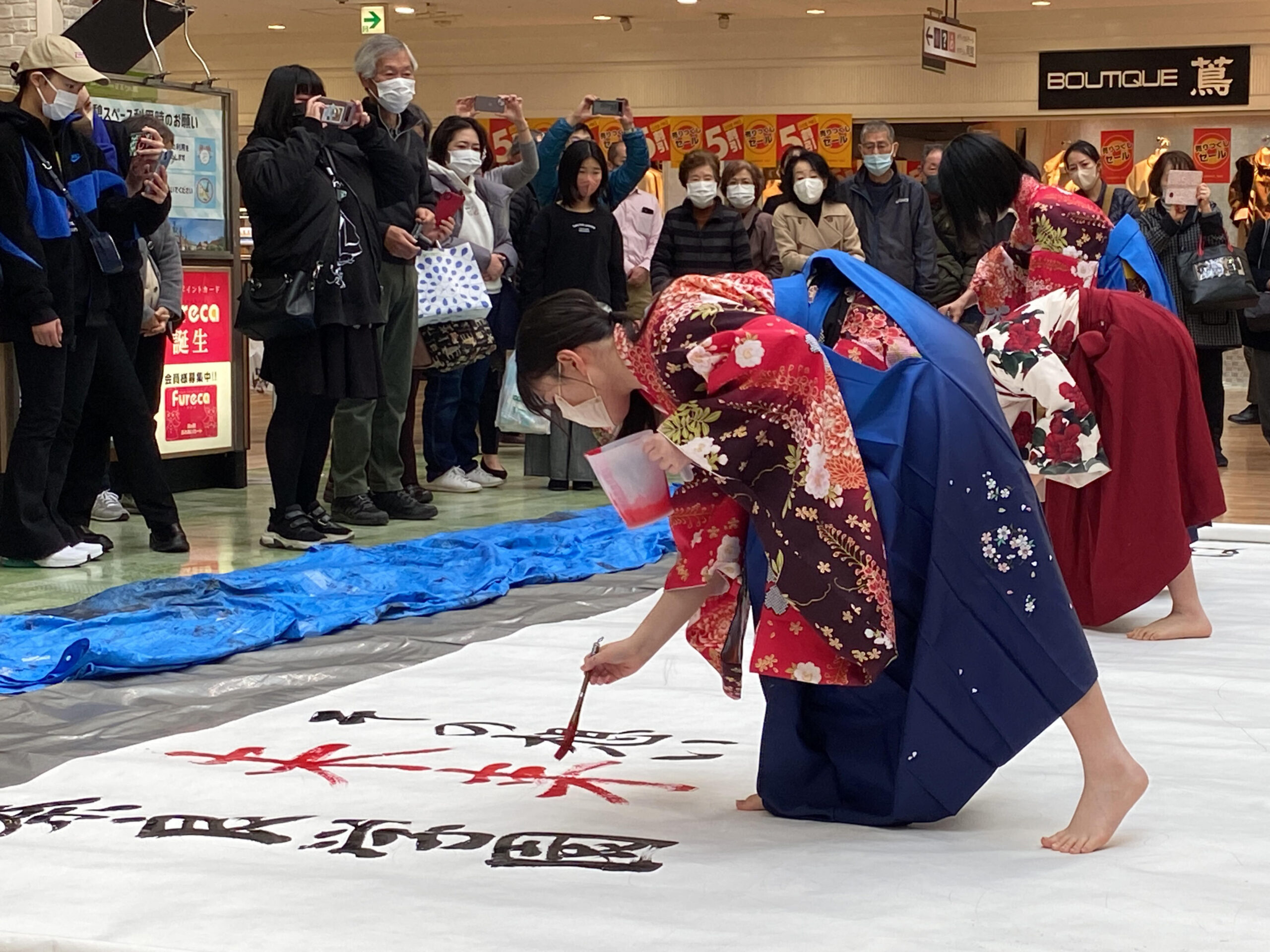 2月12日(日)午後1時から高の原サンタウンプラザすずらん館で、2つの作品を連続して実施する書道パフォーマンスを開催しました。