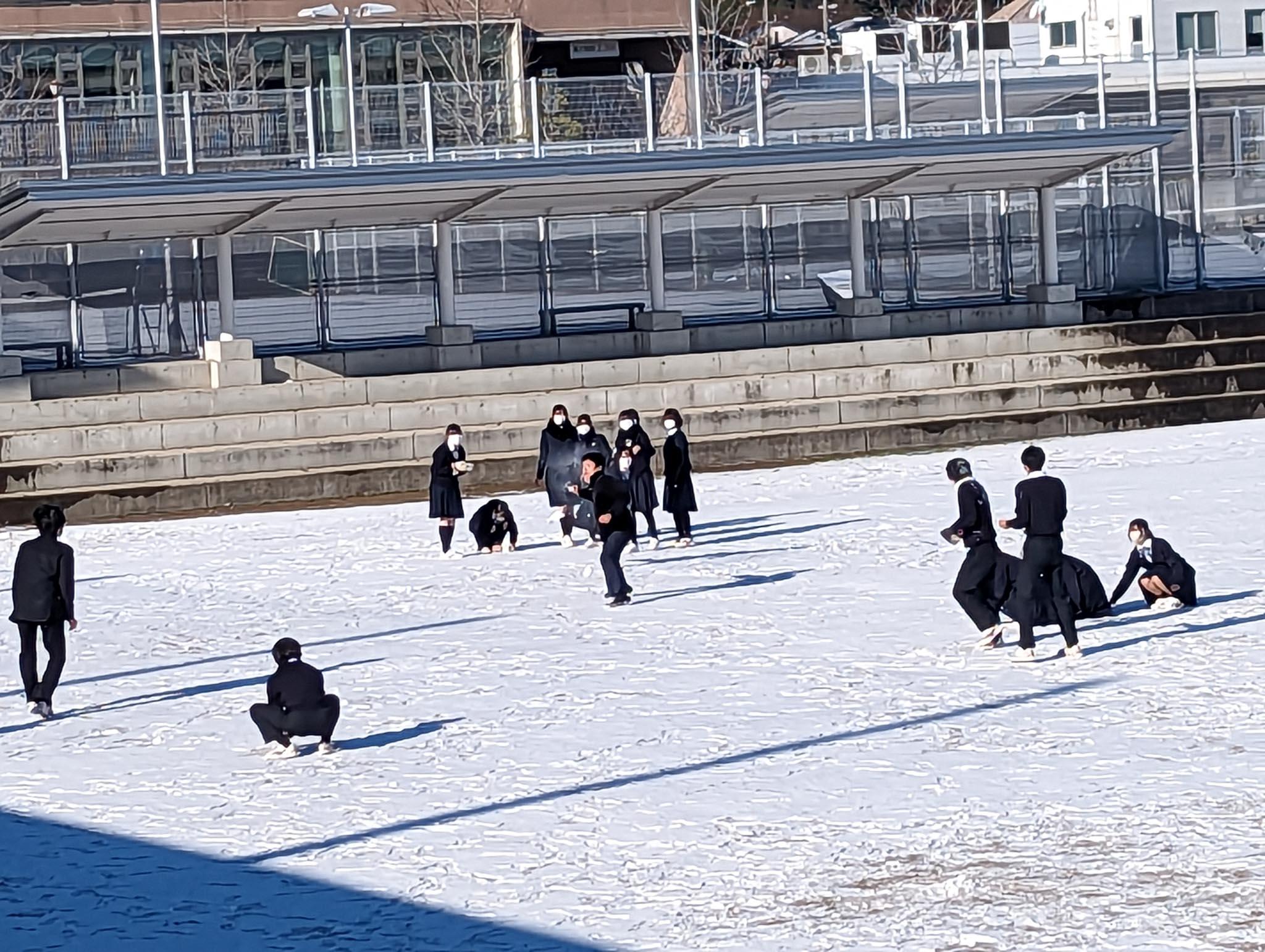 10年に一度の大寒波の日、中高生も童心に帰って、無邪気に雪と戯れる姿が見られました。