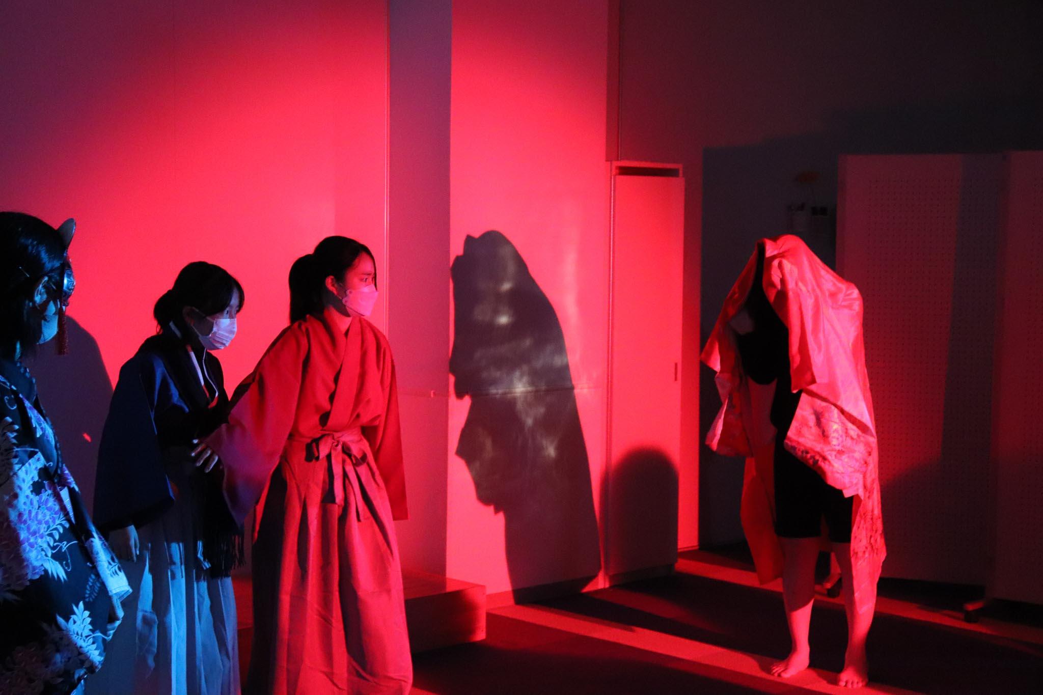 演目は顧問教員の創作による「女ヶ島に流れ着きしこと」とディケンズの「クリスマス・キャロル」の二本でした。M3(中1)からY2(高1)部員による熱演で、「女ヶ島…」は背筋が凍るようなホラー、「クリスマス・キャロル」は冷酷でけちな老人が、親切な心を取り戻すまでを描いた心温まる物語で、難しい役どころを見事に演じていました。限られた空間をうまく使った舞台転換もよく工夫されていて、演出の見せ場の多い公演となりました。