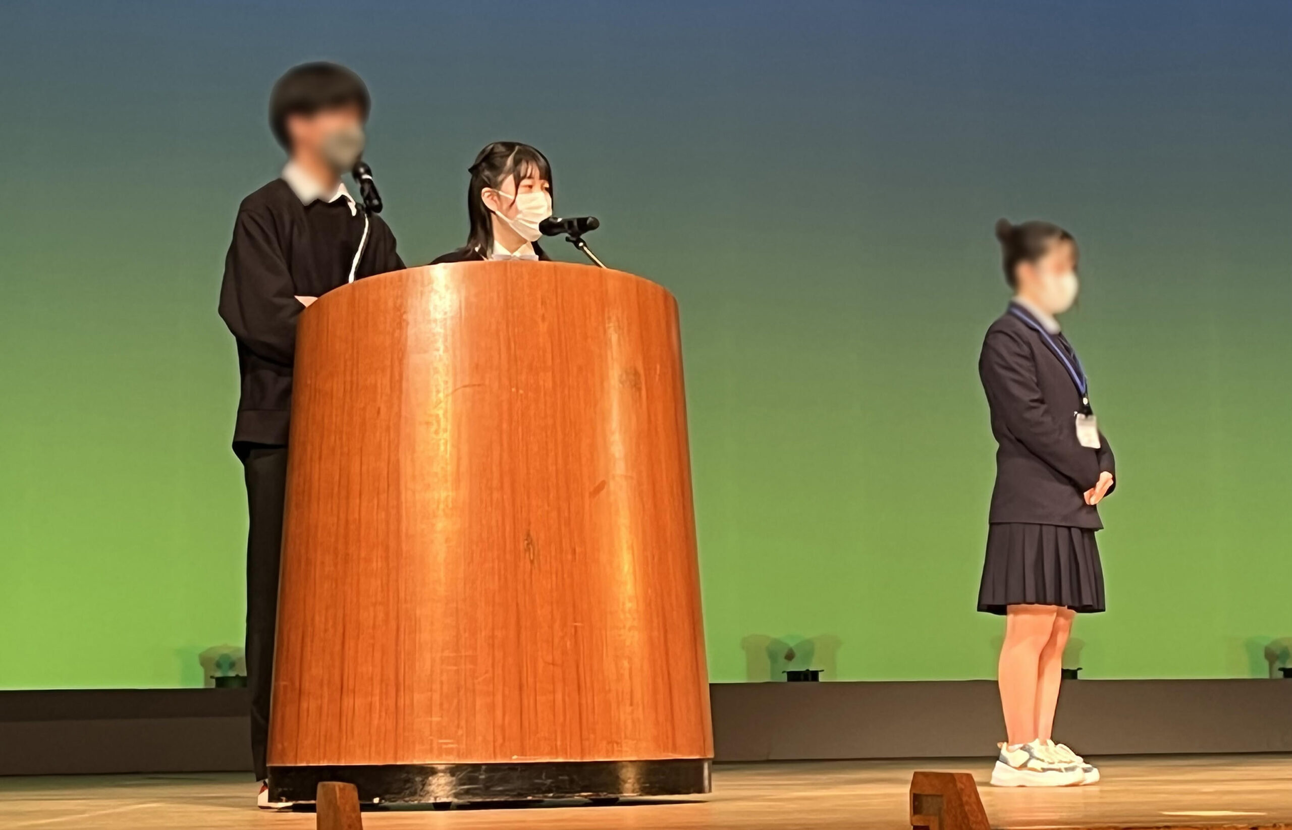 本校からは、式典の部の総合司会にY3(高2)学年の放送委員1名が抜擢され、堂々と司会進行の大役を務めました。