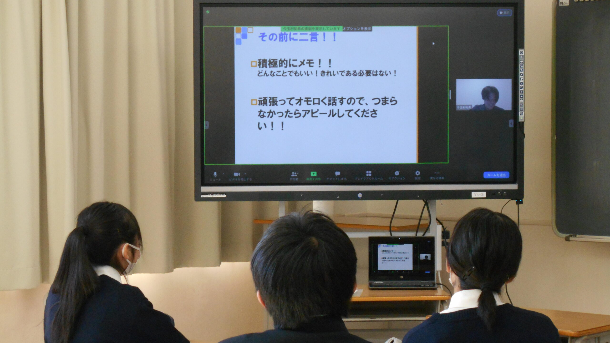 Y2(高1)・Y1(中3)学年で、「卒業生によるキャリアトーク講座」を開催しました。社会人として活躍している先輩がオンラインで、大学受験の体験談、大学生活、採用試験や社内研修、仕事の内容ややりがいなどを、様々に工夫したプレゼンシートを準備いただき、わかりやすくまたユーモアを交えて語ってくれました。