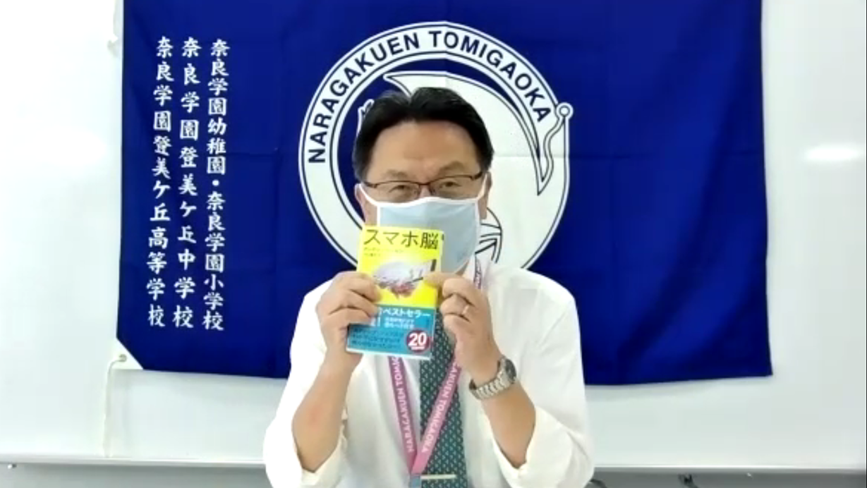 式辞の冒頭で、校長は1学期の間、コロナ対策に学校全体で取り組んだこと、生徒たちも感染防止の意義を理解し、協力してくれたことに感謝し、「伸び率日本一」を目指す本校生徒の成長を、その使い方によっては阻害してしまうスマホやSNSが人間に与える影響について書かれた「スマホ脳」(スウェーデンの精神科医の著書)という本を紹介しました。スマホは、現代社会においては大変便利な通信媒体で情報収集にも欠かせないツールですが、使い方を誤ると睡眠障害、記憶力や集中力、学力の低下、うつ病などを引き起こす要因ともなります。それを証明する実態調査や実験結果を紹介し、克服の方法として著者が推奨していることなどを説明しました。