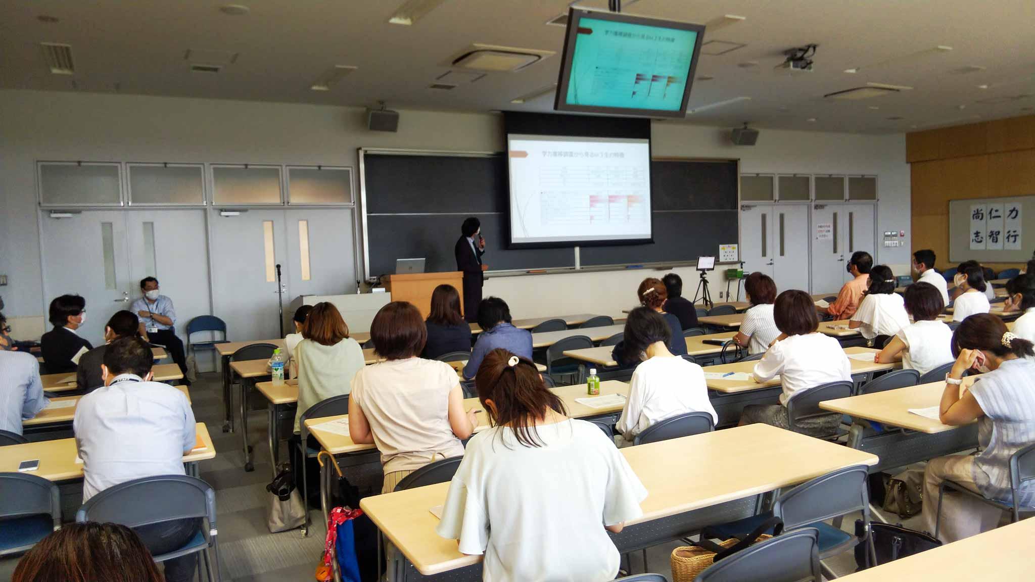 講演の中では、卒業生を送り出した先生方のアンケートから、「伸びる生徒」とはどんな生徒かのトピックもあり、学習面以外のことで、「遅刻をしない生徒、掃除・係の仕事等の役割をきちんと果たす生徒、ゲームや携帯を自らの判断で断った生徒、部活動・学校行事・学年行事などを同時にでき、楽しめる生徒」などが挙げられ、実際に難関大学に合格した先輩からのアドバイスも紹介させていただきました。