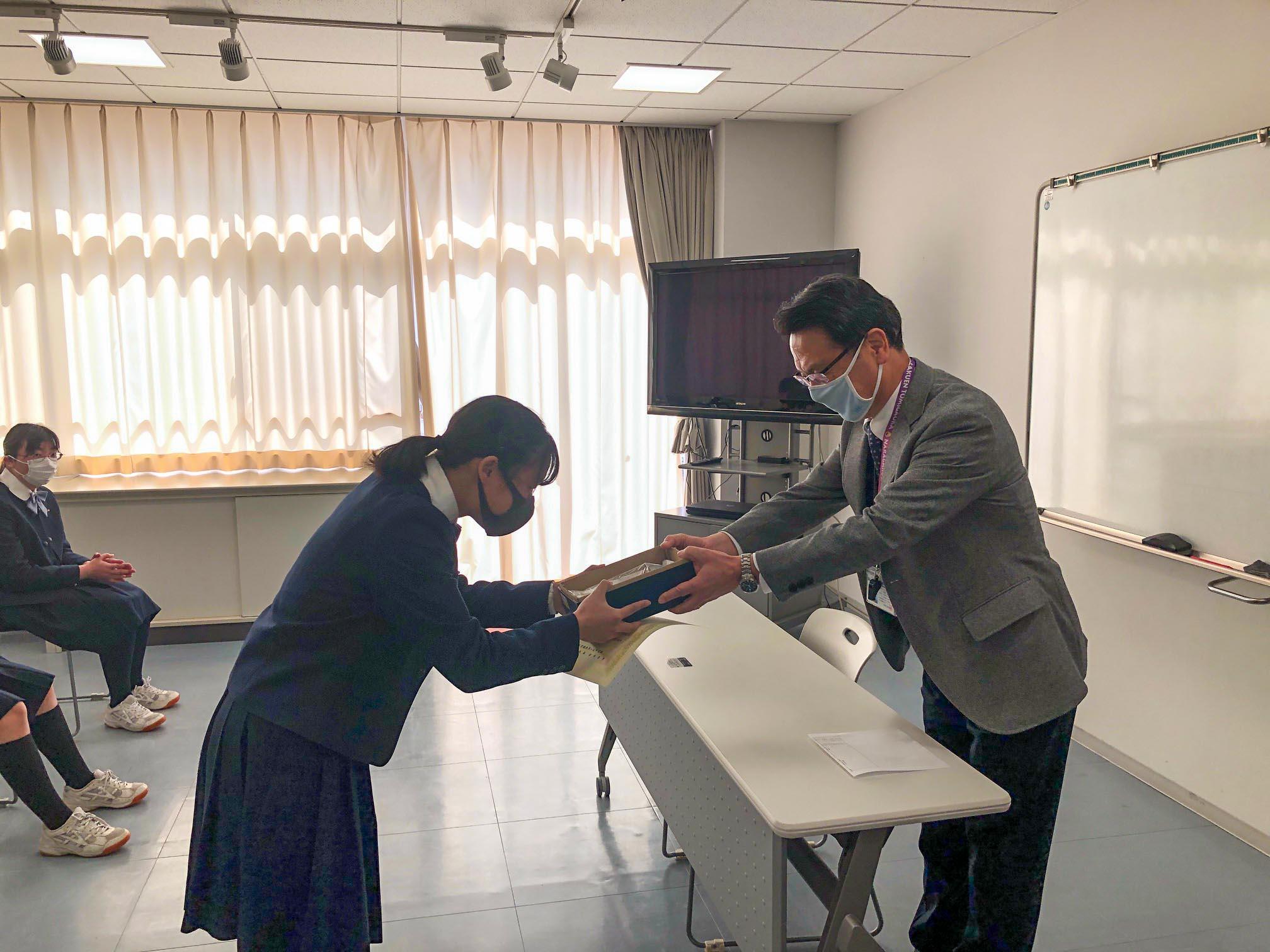 本年度の終業式、中学卒業認定、Middle課程修了認定の後、サイエンスラボにて皆勤生徒、部活動等で活躍した生徒たちに賞状を伝達しました。