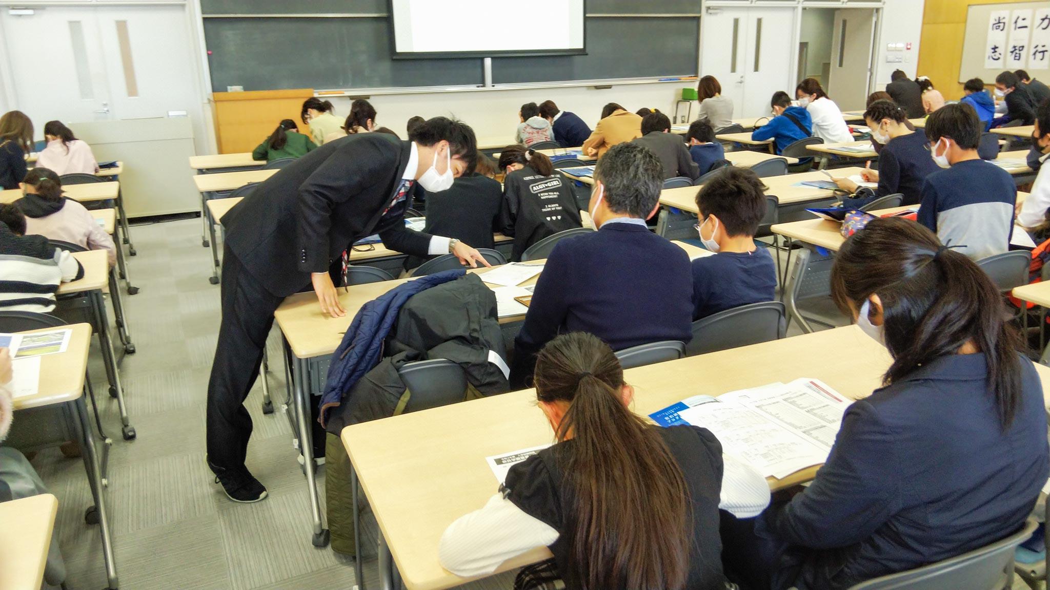 説明会冒頭の校長挨拶で、「伸び率日本一の学校を目指すこと」、そのために「子どもの自己肯定感を高め、潜在能力を伸ばすこと」「学びの基盤となる『人間力』を高めること」を説明し、広報部長から奈良学園登美ヶ丘の教育として、本年度から始めた「探究学習」とコロナ対策について、また進学実績と進路指導の概要を説明しました。