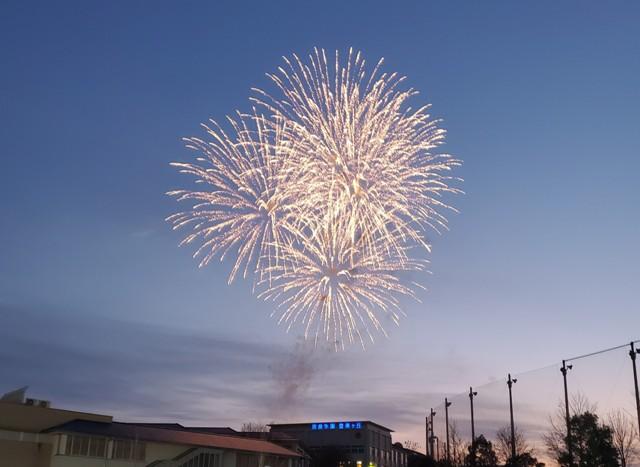 2月12日、日没を待って本校初めてのイベントとなる「打ち上げ花火鑑賞会」を開催しました。生徒会本部役員・文化委員会の企画で、今年のコロナウイルスの流行に対する疫病退散祈願とY4(高校3年)生の第一志望合格祈願への思いを込めての実施となりました。