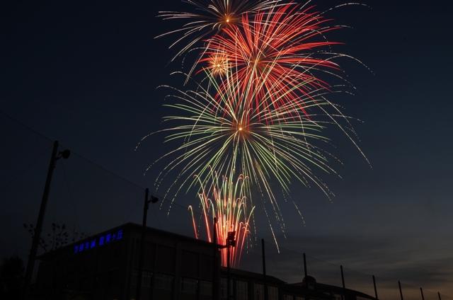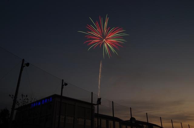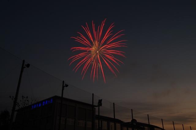 打ち上げ数は65発、約5分ほどの鑑賞会でしたが、本校総合グラウンドに集合した生徒たちは夜空を彩る美しい花火に驚きと感動の歓声を上げていました。